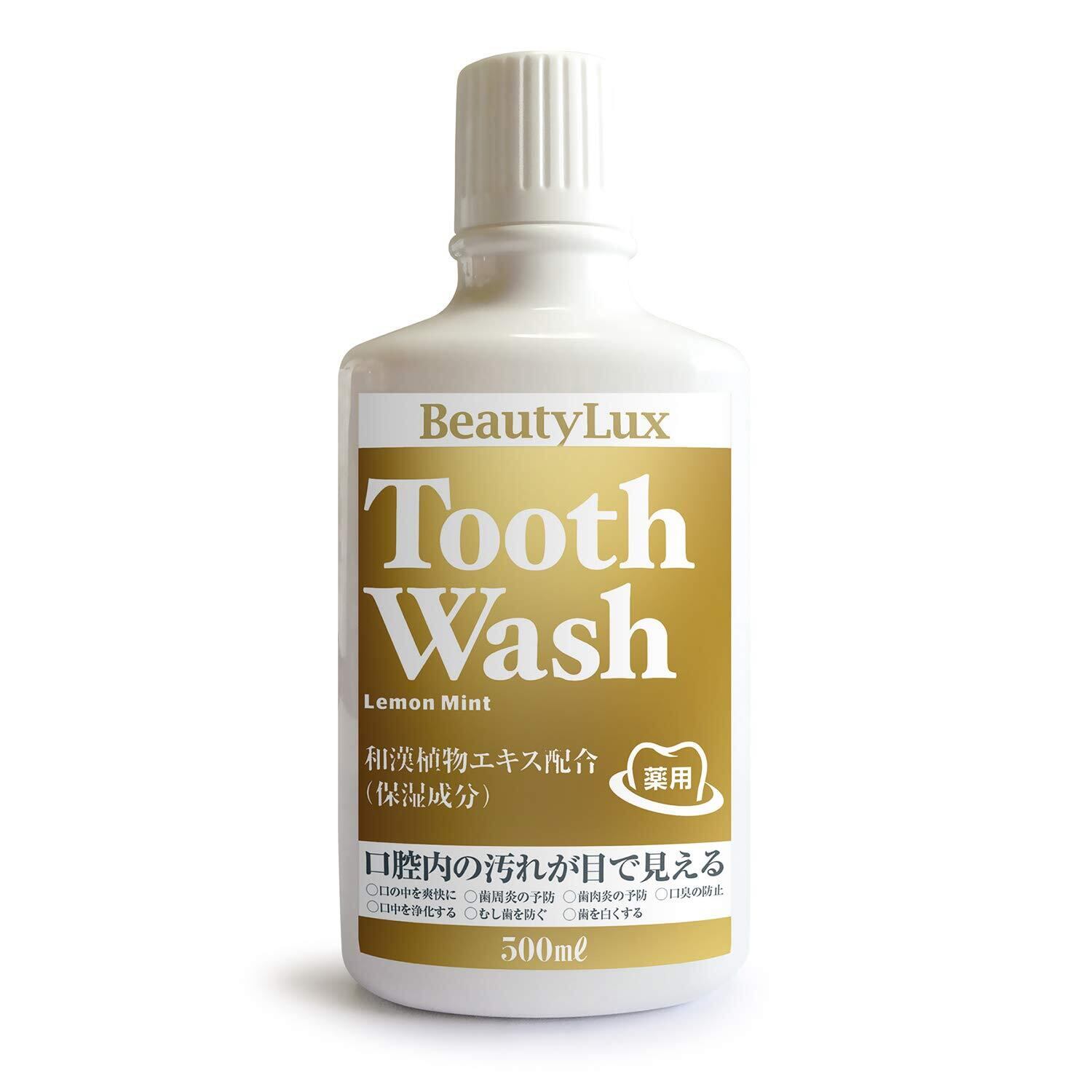 BeautyLux Tooth Wash 医薬部外品 薬用マウスウォッシ 500ml レモンミント ≪効能・効果≫口臭防止、歯を白くする、歯周炎(歯槽膿漏)の予防、歯肉(齦)炎の予防、虫歯予防、口内浄化、口内を爽快にする