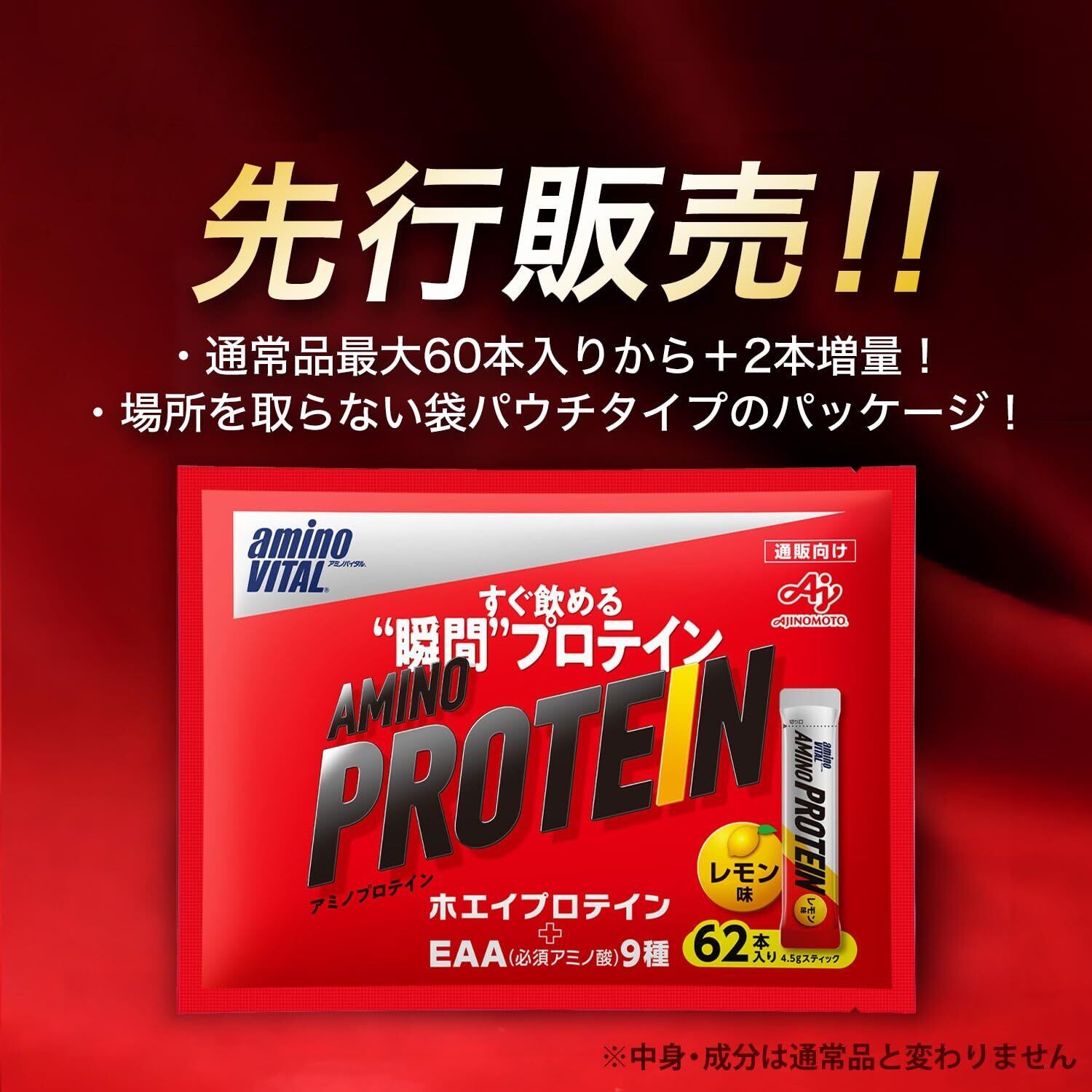 アミノバイタル 味の素 アミノプロテイン レモン味 スティック 62本入袋 ホエイプロテイン EAA BCAA シェイカー不要 計量不要 携帯可