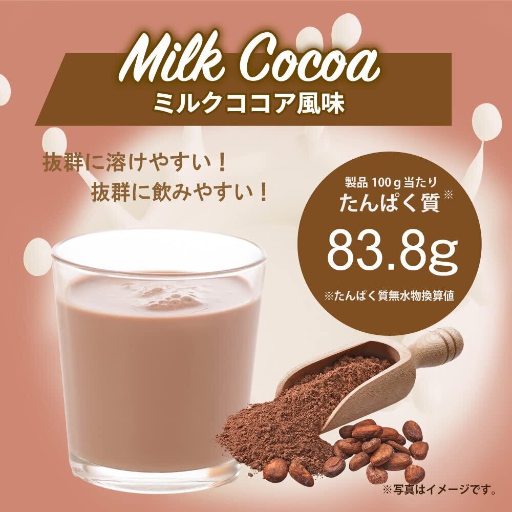 【ミルクココア風味】原材料名:乳清たんぱく(アイルランド製造)、ココアパウダー、食塩/乳化剤、 香料、 甘味料(スクラロ ース、ステビア、アセスルファムK)、(一部に乳成分・大豆を含む)