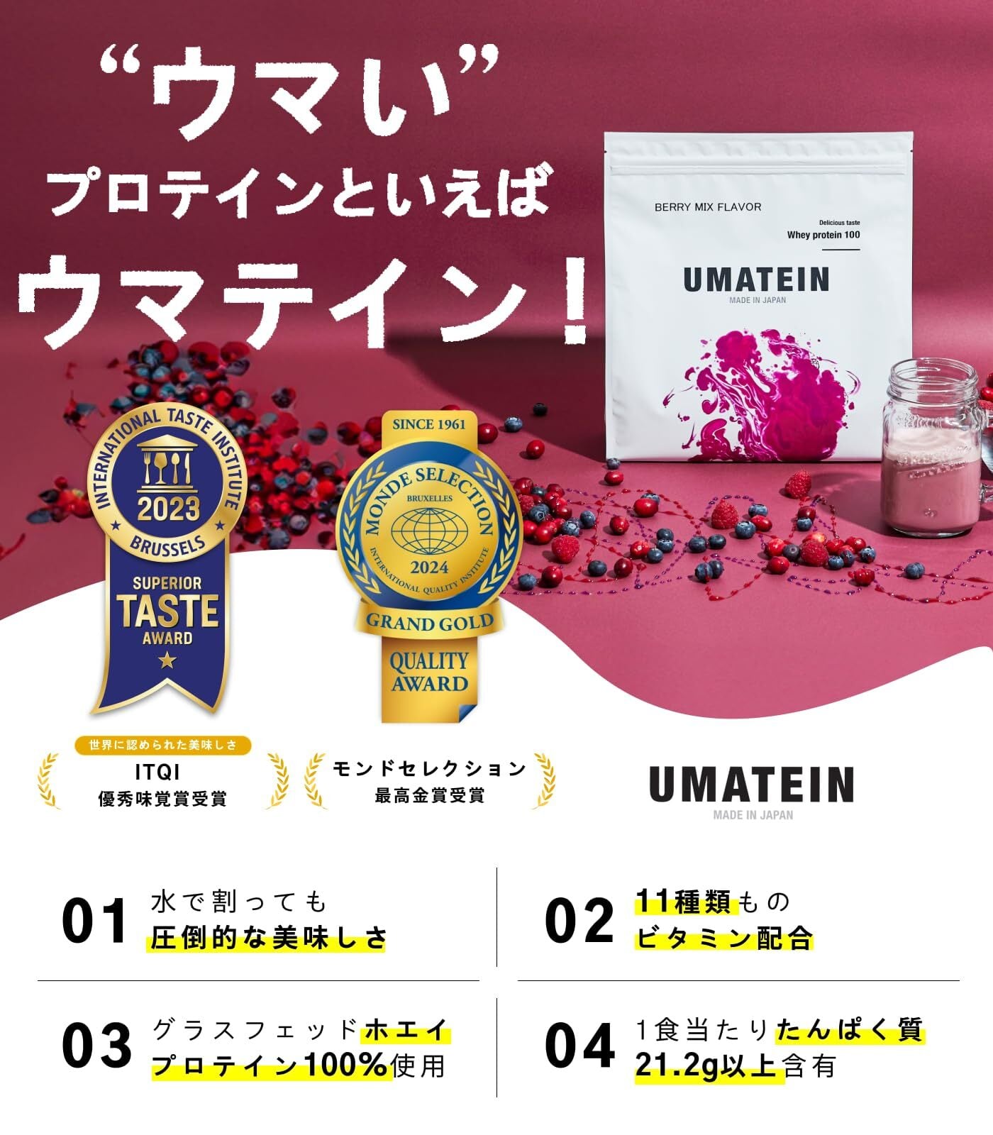 【ウマい プロテイン】 ウマテイン ホエイプロテイン ベリーミックス味 1㎏ ぷろていん 国産