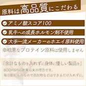 アミノ酸スコア100、乳牛への成長ホルモン剤不使用の高品質なWPCホエイプロテインを原料に使用。