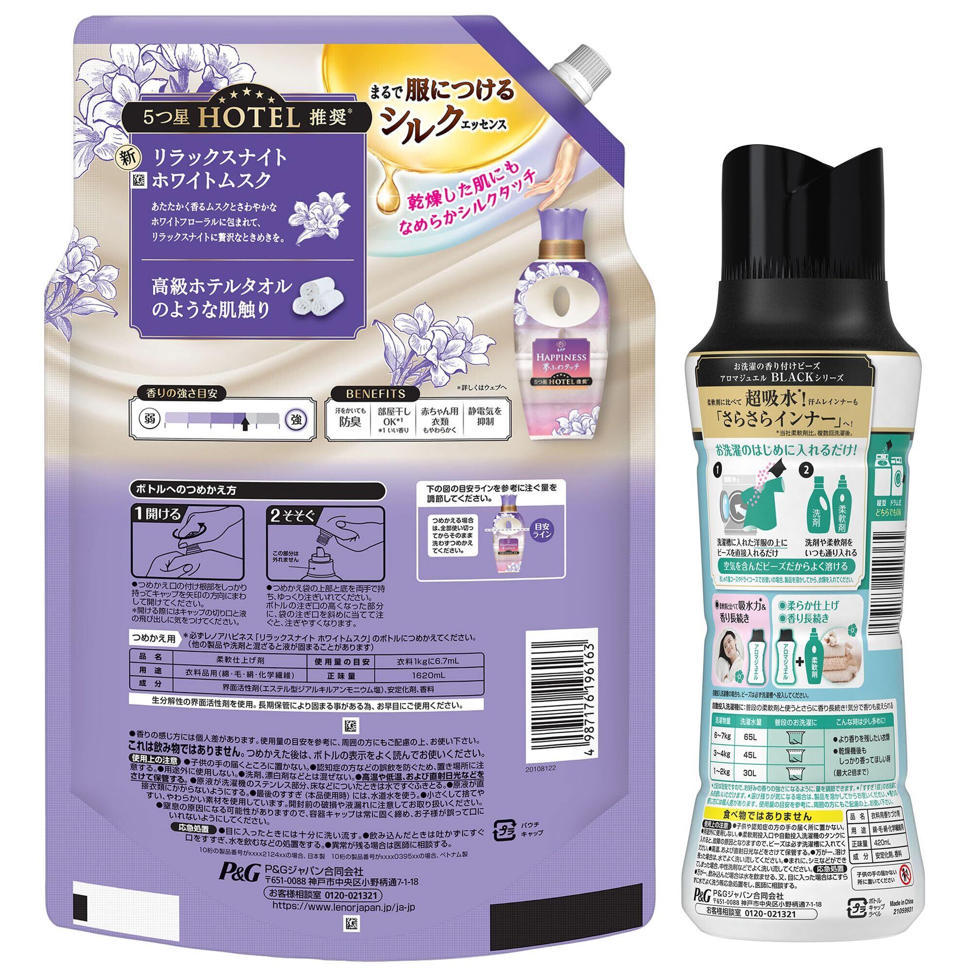 【人気商品】レノア 【まとめ買い】【柔軟剤+ビーズ】 ハピネス夢ふわタッチリラックスナイトホワイトムスクの香り柔軟剤詰め替え 1620mL + アロマジュエル 香り付け専用ビーズパステルフローラル&ブロッサムの香り本体420mL | Lumisfera