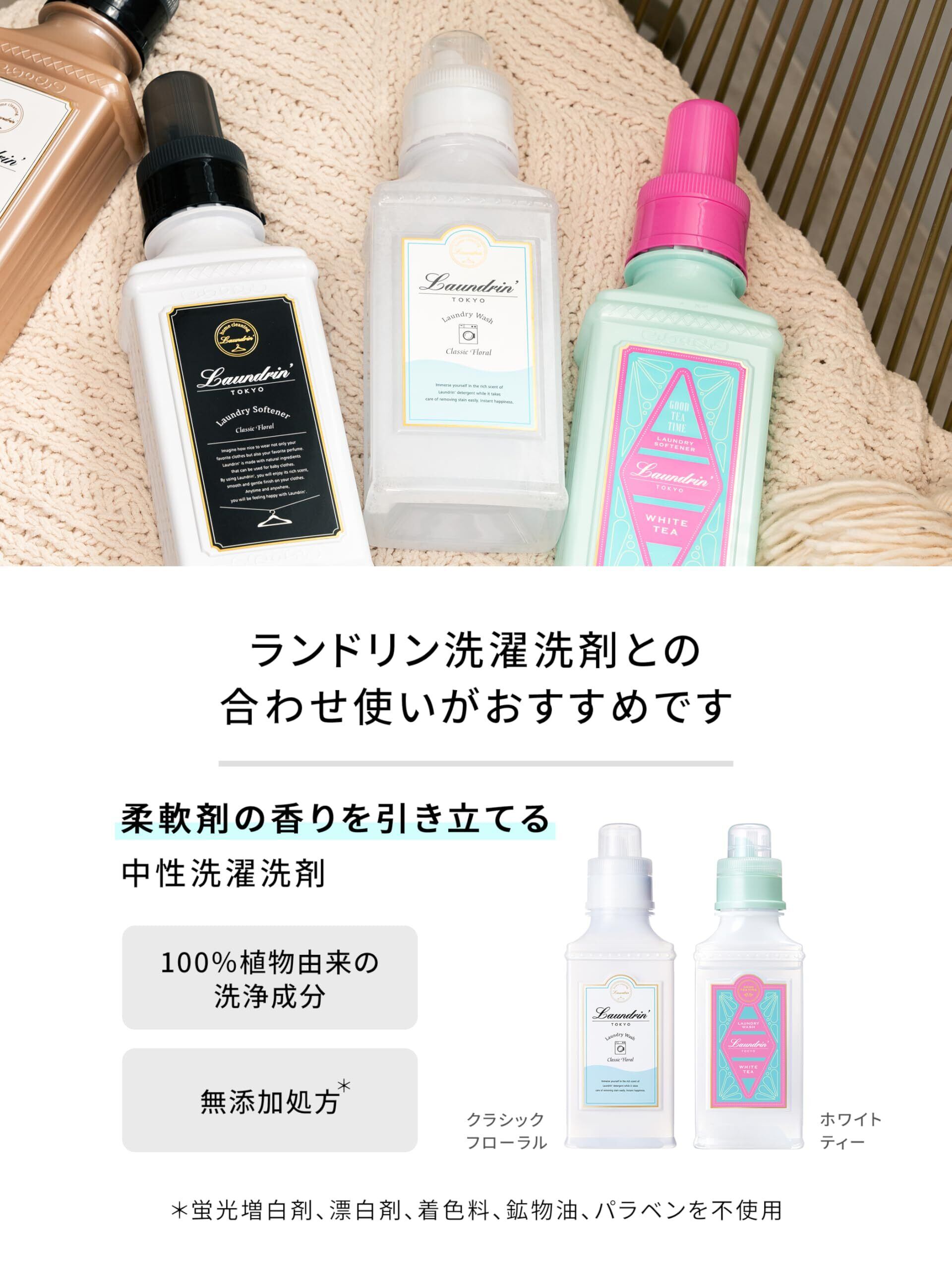 『香りをまとう』発想で洗濯を。植物生まれの柔軟成分でお肌にやさしい仕上がりの柔軟剤。うっとりするような優雅な気分をイメージした、上品なクラシックフローラルの香り。