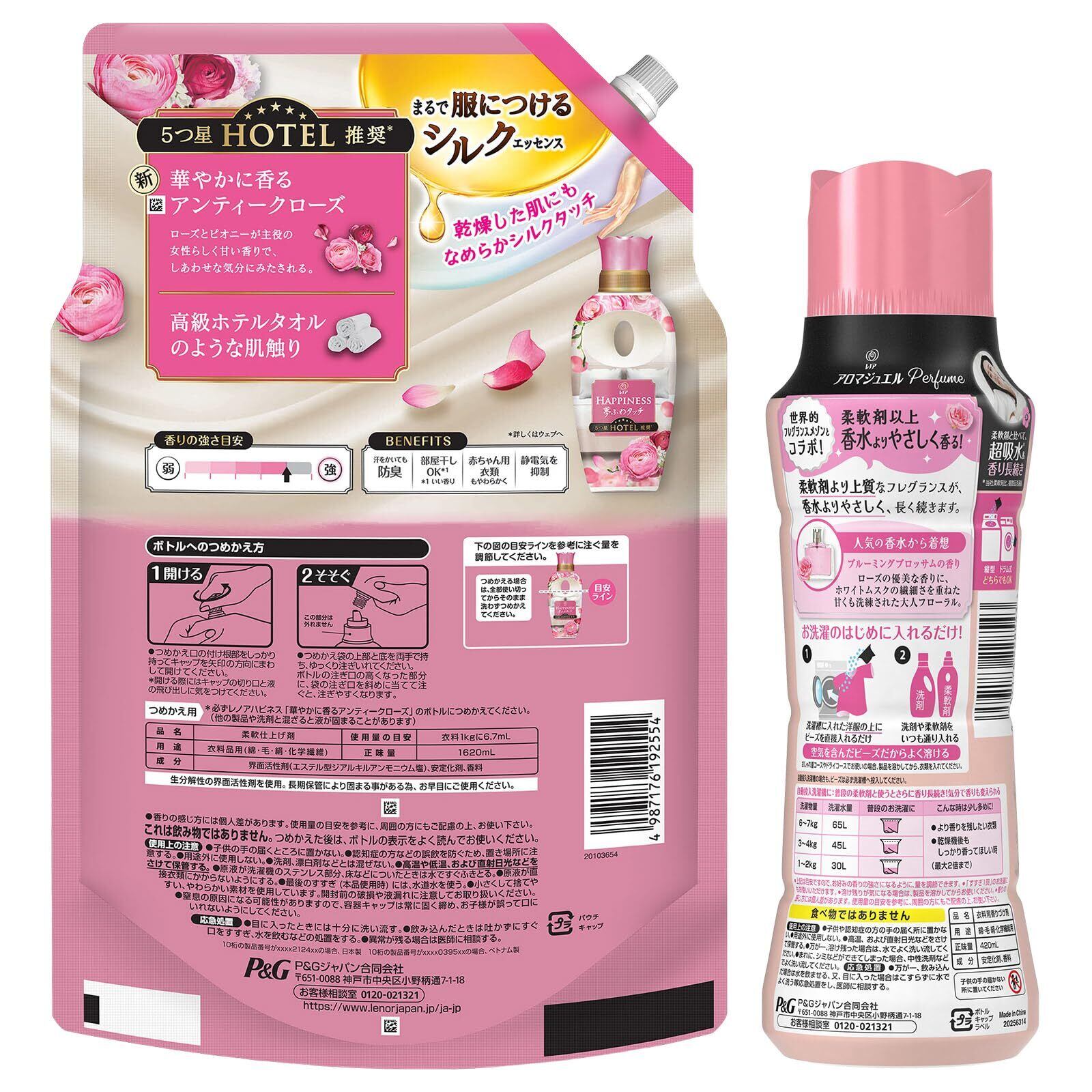 レノア 【まとめ買い】【柔軟剤+ビーズ】 ハピネス夢ふわタッチ華やかに香るアンティークローズ柔軟剤詰め替え 1620mL + アロマジュエル 香り付け専用ビーズブルーミングブロッサム 本体 420mL
