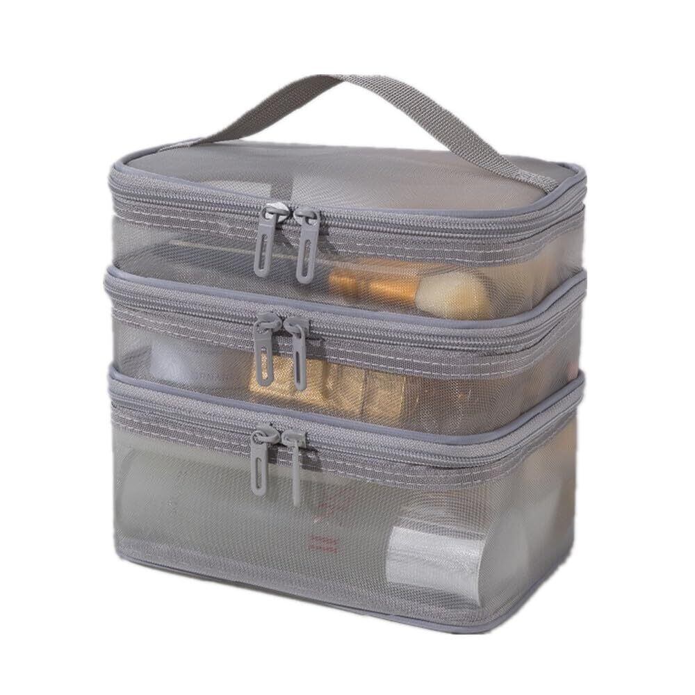 FLORPERRY 化粧ポーチ メッシュ 収納バッグ メイクボックス 大容量 コスメポーチ メイクポーチ 化粧品入れ 化粧バッグ トイレタリーバッグ 洗面バッグ 超軽量 トラベルポーチ 出張 旅行 コスメボックス バニティポーチ グレー-三層
