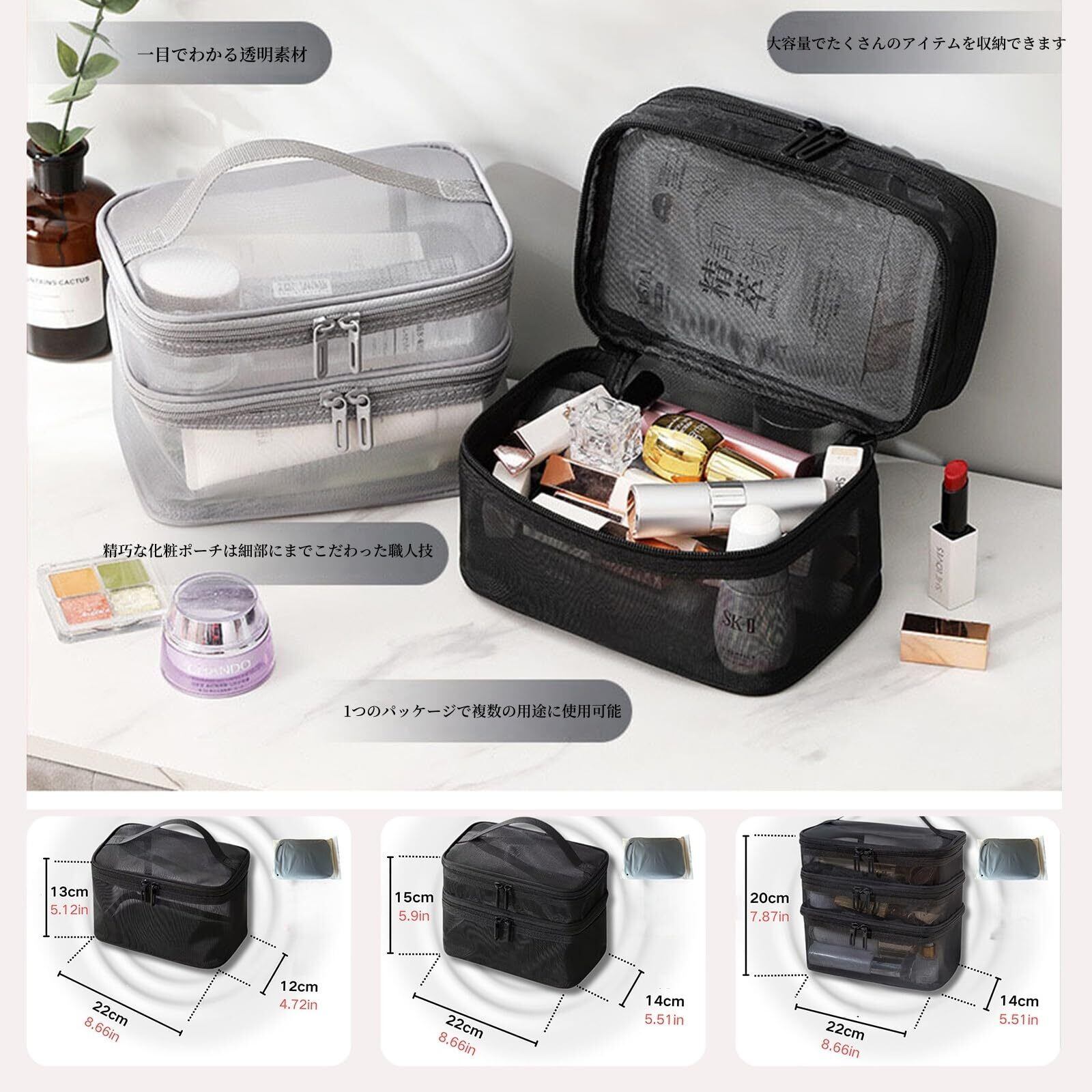【新春セール】FLORPERRY 化粧ポーチ メッシュ 収納バッグ メイクボックス 大容量 コスメポーチ メイクポーチ 化粧品入れ 化粧バッグ トイレタリーバッグ 洗面バッグ 超軽量 トラベルポーチ 出張 旅行 コスメボックス バニティポーチ グレー-三層 | Lumisfera