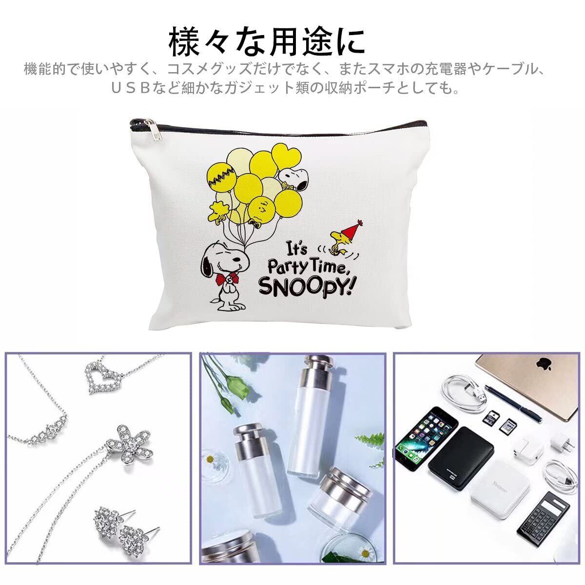 【2022最新】スヌーピー ポーチ レディース 化粧ポーチ ミニポーチ 機能的 大容量 軽量 出張 トラベルポーチ