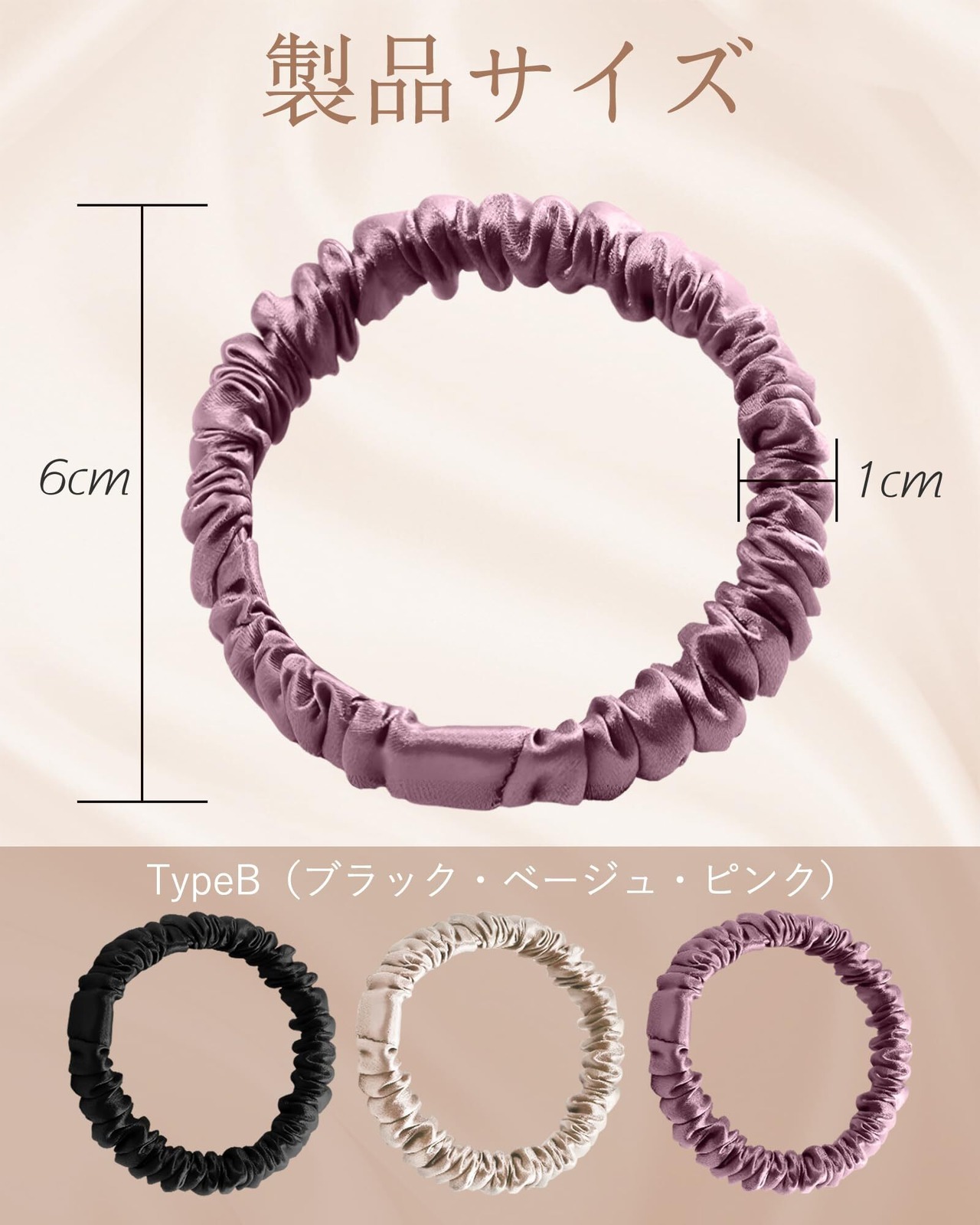 ヘアゴム シュシュ 天然シルク 100% 髪ゴム 大人 髪にやさしい 跡がつかない 高弾性 髪留め おしゃれ 3本セット(B)