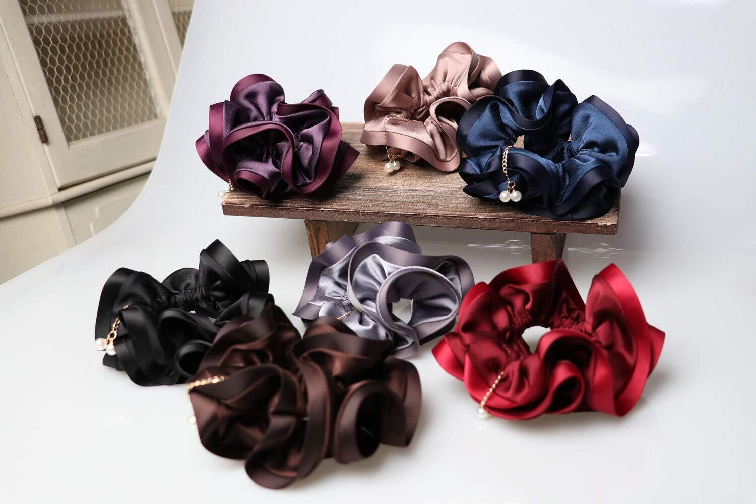 【上品】シックな色合いで艶感が綺麗な印象。定番のシュシュも女性らしい光沢のあるサテン生地で、ぐっとエレガントな印象に。