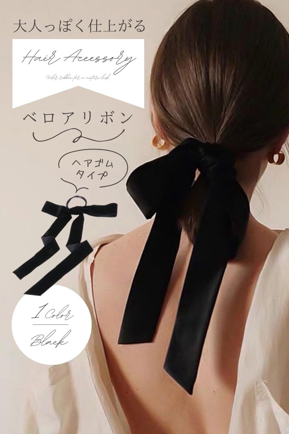 [Ron-velk] リボン ヘアゴム ベロア ヘアアクセサリー 髪飾り ベルベット 髪ゴム 韓国 黒 ブラック