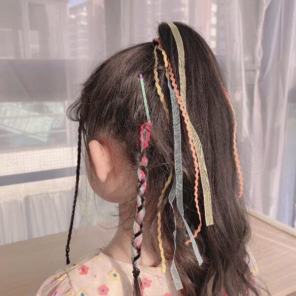 【新着商品】[デコラティブ] エクステ風 ヘアゴム 5個セット リボン レース カラフル ゴム ダンス キッズ 女の子 子ども用 ファッション 髪型 三つ編み 編み込み セット | Lumisfera