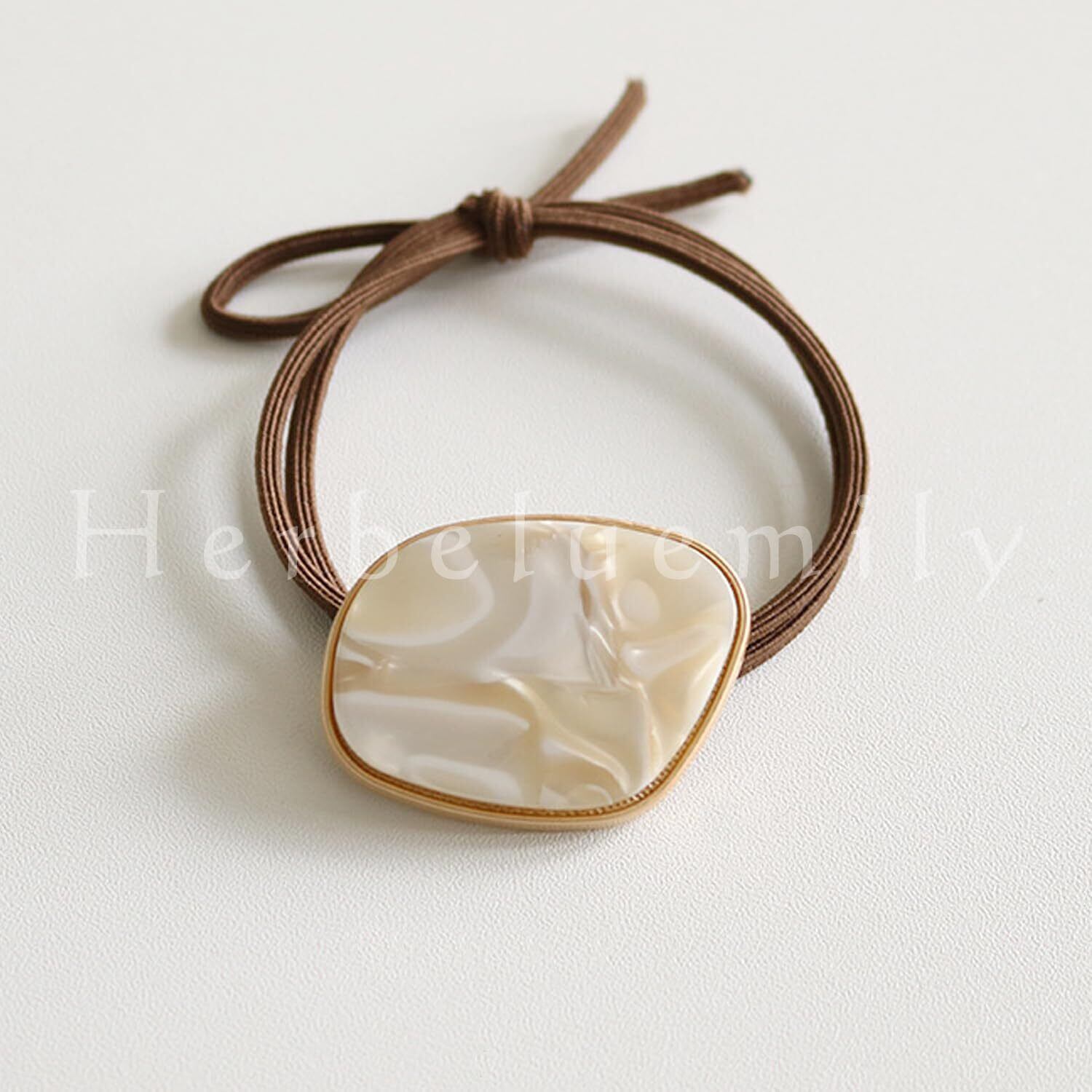 [Herbeluemily] ヘアゴム 髪ゴム シンプル 飾り付きヘアゴム 上品 チャーム付き ヘアアクセサリー飾りつき D(ホワイトベージュ) HM-0093-R03-D