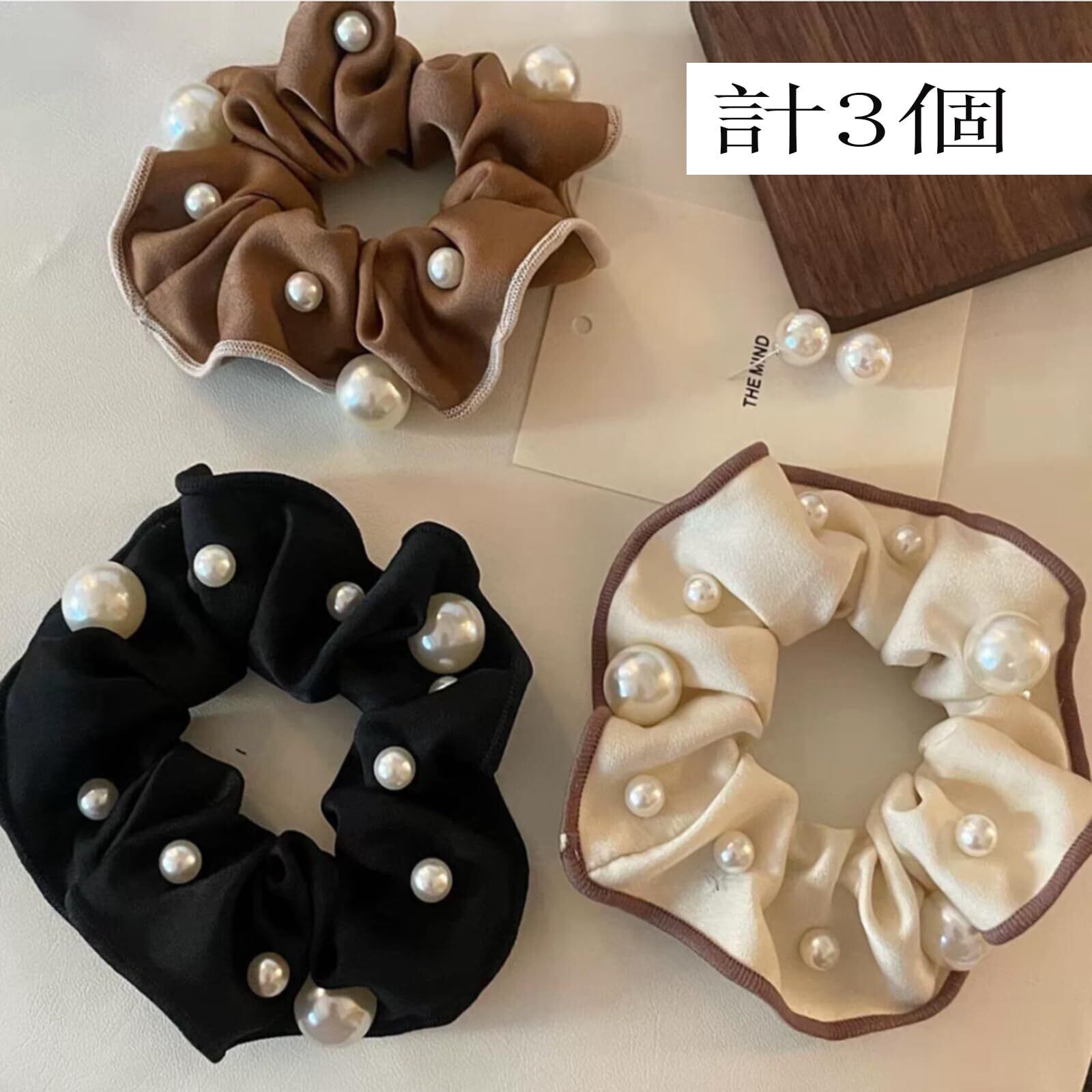 HAPVITAL シュシュ シフォン シュシュ おしゃれ 大人 ヘアロープ ヘアゴム 大人 髪飾り 大きめ 無地 特大 エレガント サテン シンプル ヘアアクセサリー ヘアアクセサリー (パールデザイン)