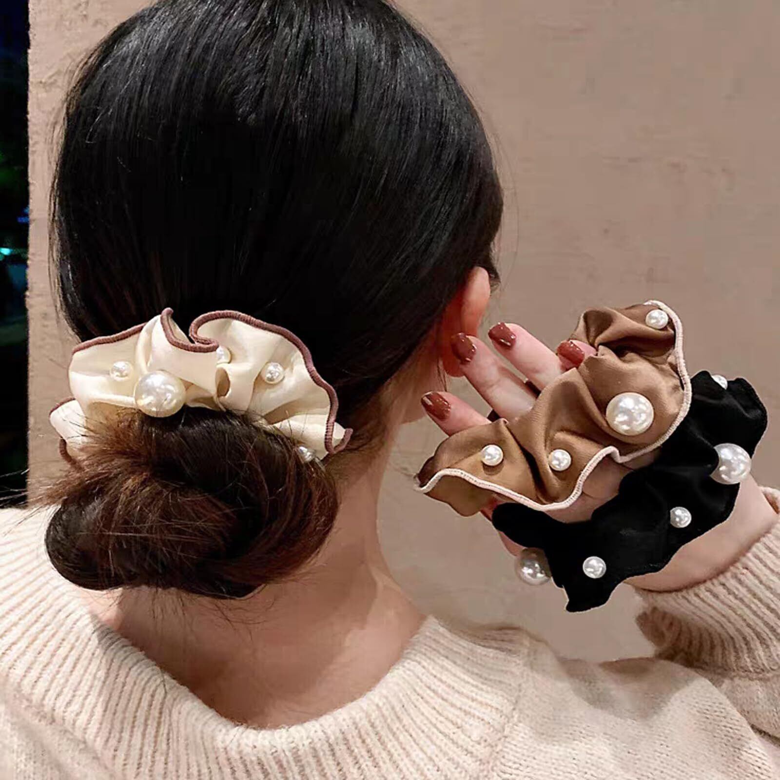 【人気商品】HAPVITAL シュシュ シフォン シュシュ おしゃれ 大人 ヘアロープ ヘアゴム 大人 髪飾り 大きめ 無地 特大 エレガント サテン シンプル ヘアアクセサリー ヘアアクセサリー (パールデザイン) | Lumisfera