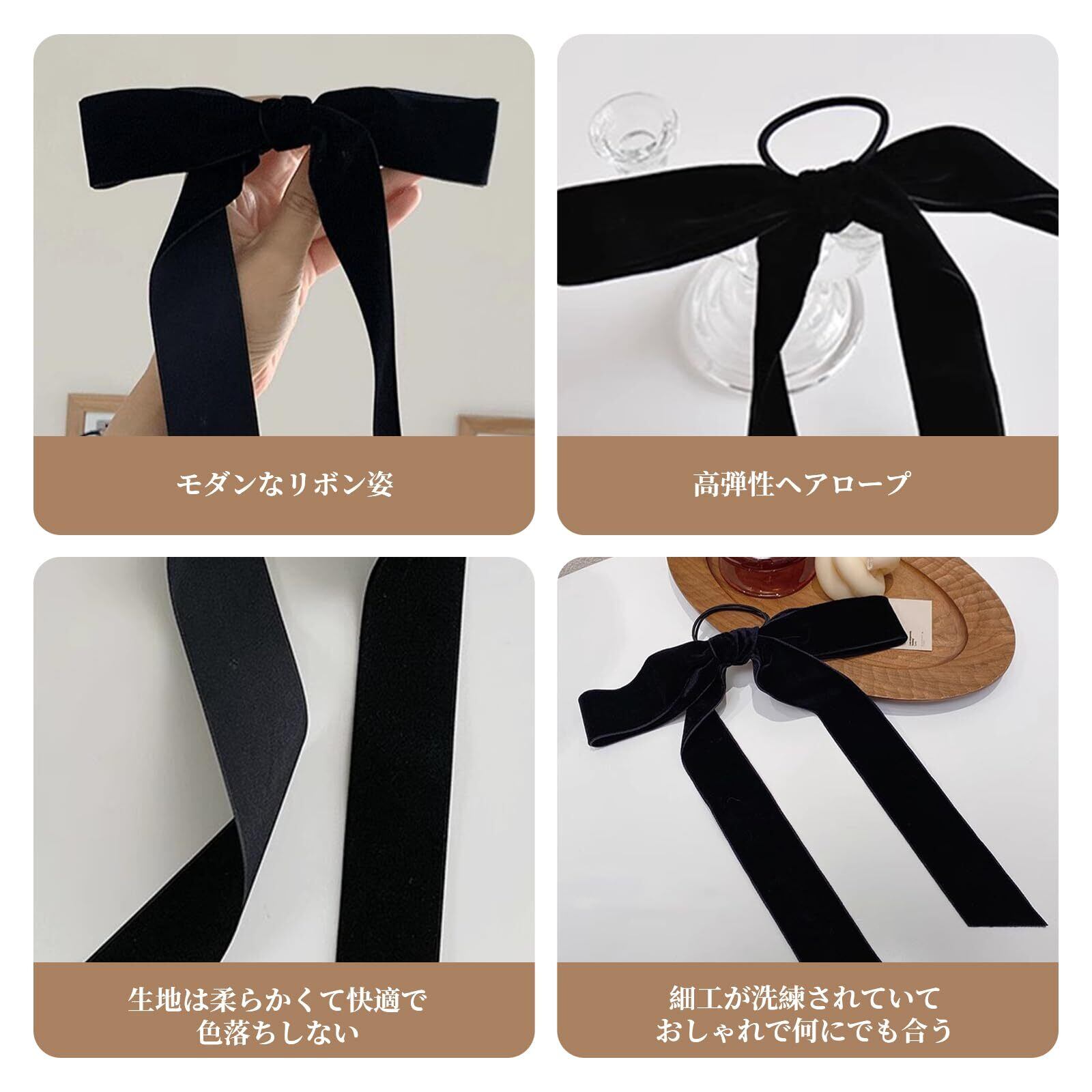 Coollooda ベロアリボン (2個入り) リボン髪飾り シュシュ ヘアゴム ヘアアクセサリー ヘアカフ ヘアアクセサリ 蝶々結び 生地 ベルベット おしゃれ 髪に優しい シンプル ベルベット 静電気防止 上品 入学式 結婚式 卒業式 デート 通勤 全年龄使用 (黒)