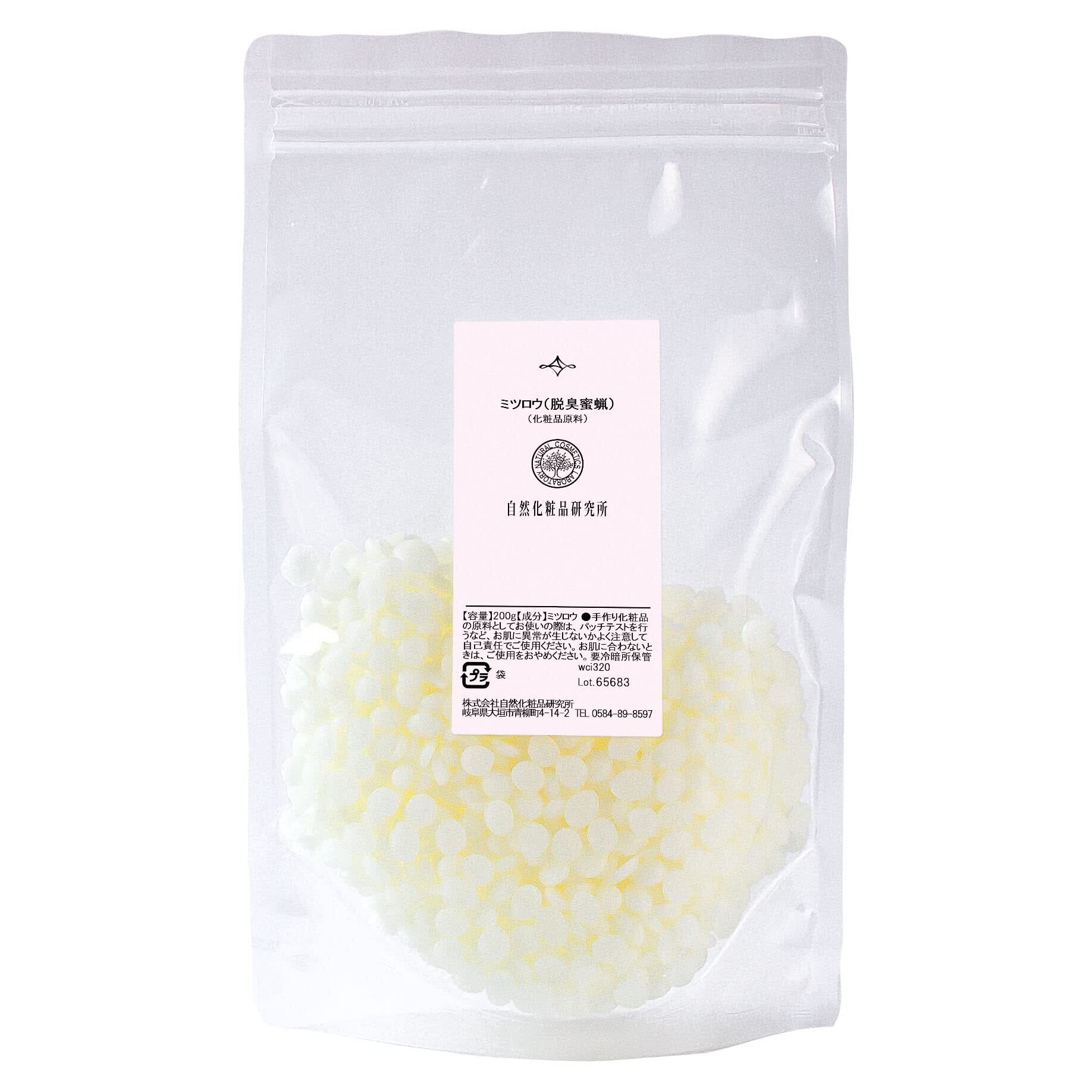 自然化粧品研究所 ミツロウ (脱臭蜜蝋) 精製 ハイグレード ビーズワックス 無添加 脱臭 蜜蝋 天然 200g