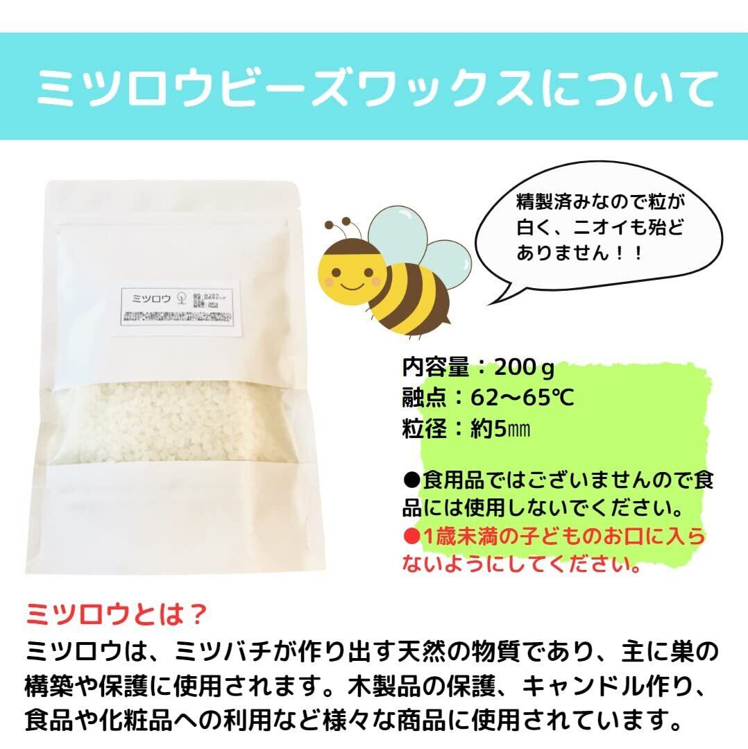 【商品名】 ミツロウ 蜜蝋 230g ビーズ ワックス beeswax 【商品説明】 天然素材。ペレット状で扱いやすい 品名:蜜蝋ワックス 正味量:230g