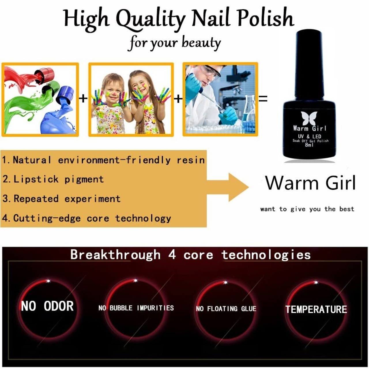 お客様サポート:アレルギー反応を引き起こす可能性があります。使用前に皮膚テストを行う必要があります。写真は2度塗りしたものですが、光源やモニター、コーティングの違いにより、色の濃さは異なります。使用の時何か問題が当たつら、気にせずご連絡してください。