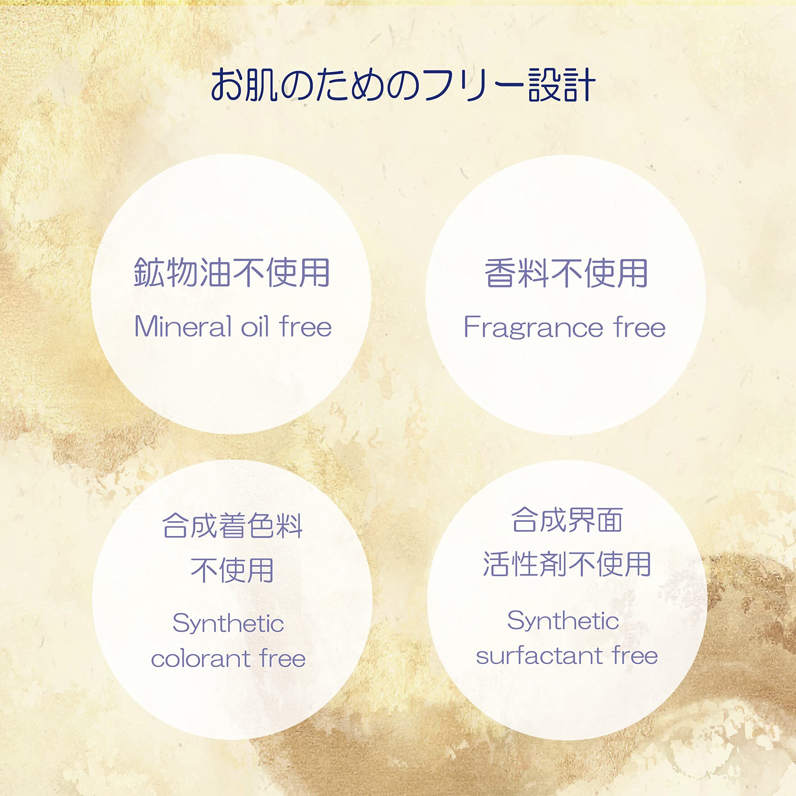 余計な成分を含まない4フリー(鉱物油不使用・香料不使用・合成界面活性剤不使用・合成着色料不使用)を実現しました。