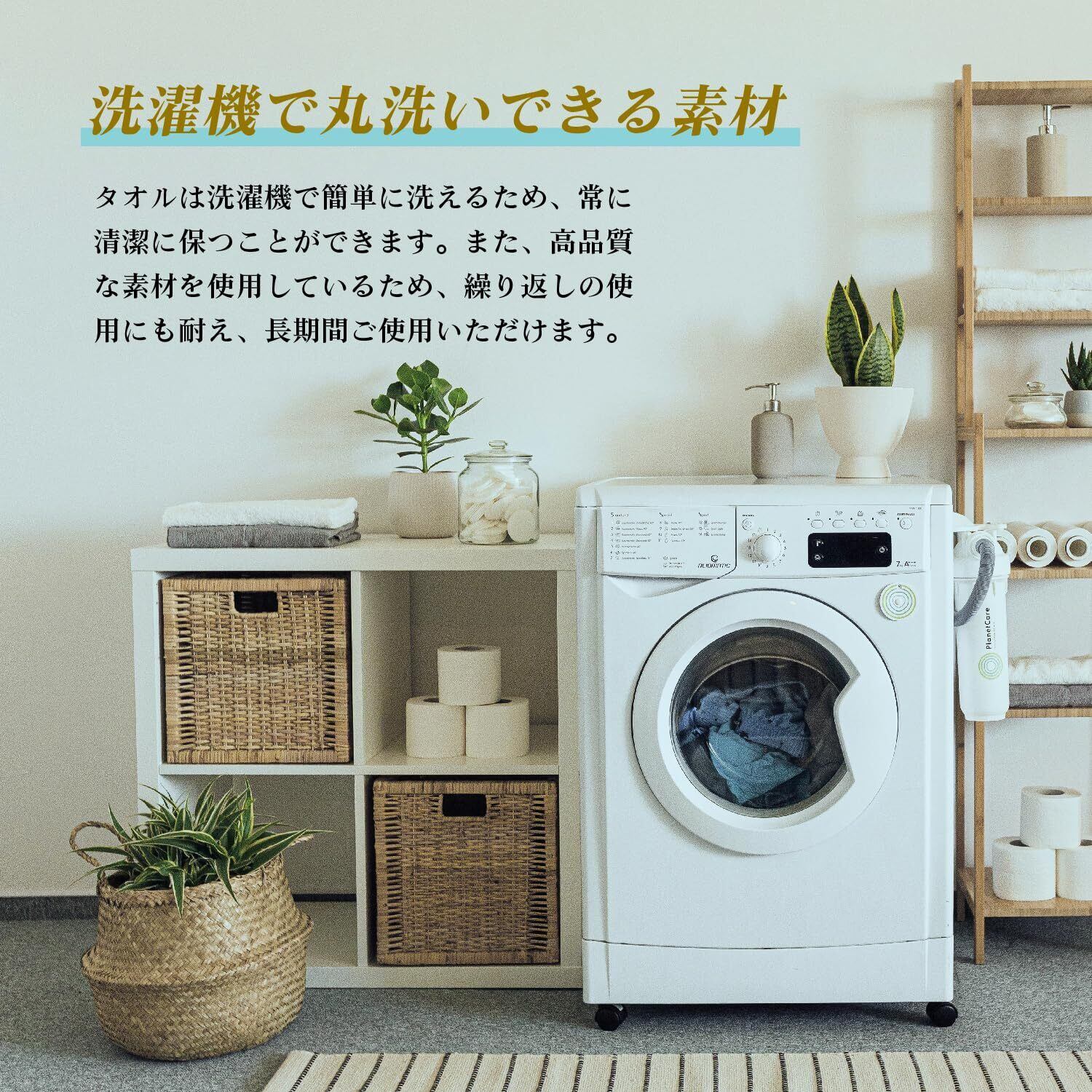 【洗濯機で洗えるので清潔に保てます!】 タオルは洗濯機で簡単に洗えるため、常に清潔に保つことができ、長くお使いいただけます。