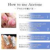 ジェルネイルのオフに欠かせないアセトン。コットンに含ませジェルの上に置き、アルミホイルを巻いてジェルを除去してください。