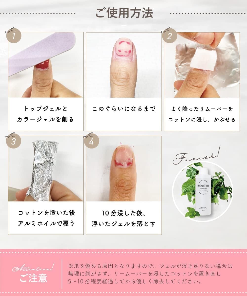 mogahna もがな ジェルネイルリムーバー アセトンフリー リムーバー ジェルオフ剤 ネイル ジェル除去 ジェルネイル 大容量 除光液 オフ ミント180ml 透明