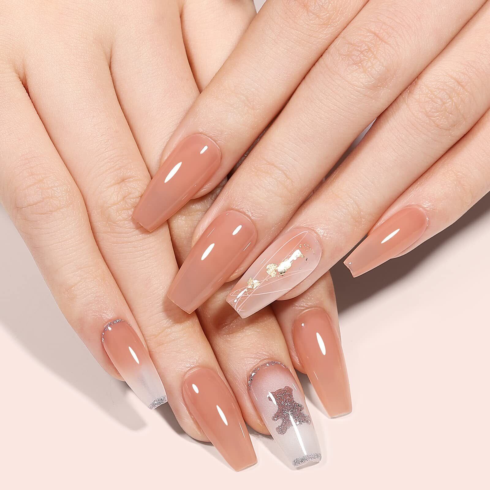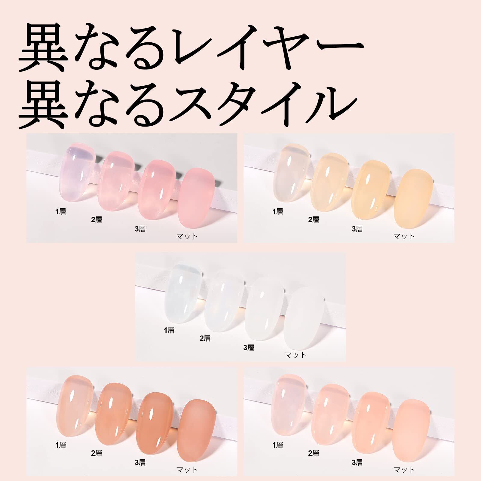 【ゼリースタイルのジェルネイル】オパールゼリーな質感にこだわったネイルジェル、透明感たっぷり。さりげなく洗練された透明感のあるヌードスタイル。日常生活、仕事、デートに使えます。 フレンチネイルを作成するベースカラーとしても使用できます。単色として使用だけでなく、ブルーミング、ホログラム、押し花などのりやデザインにも適用。