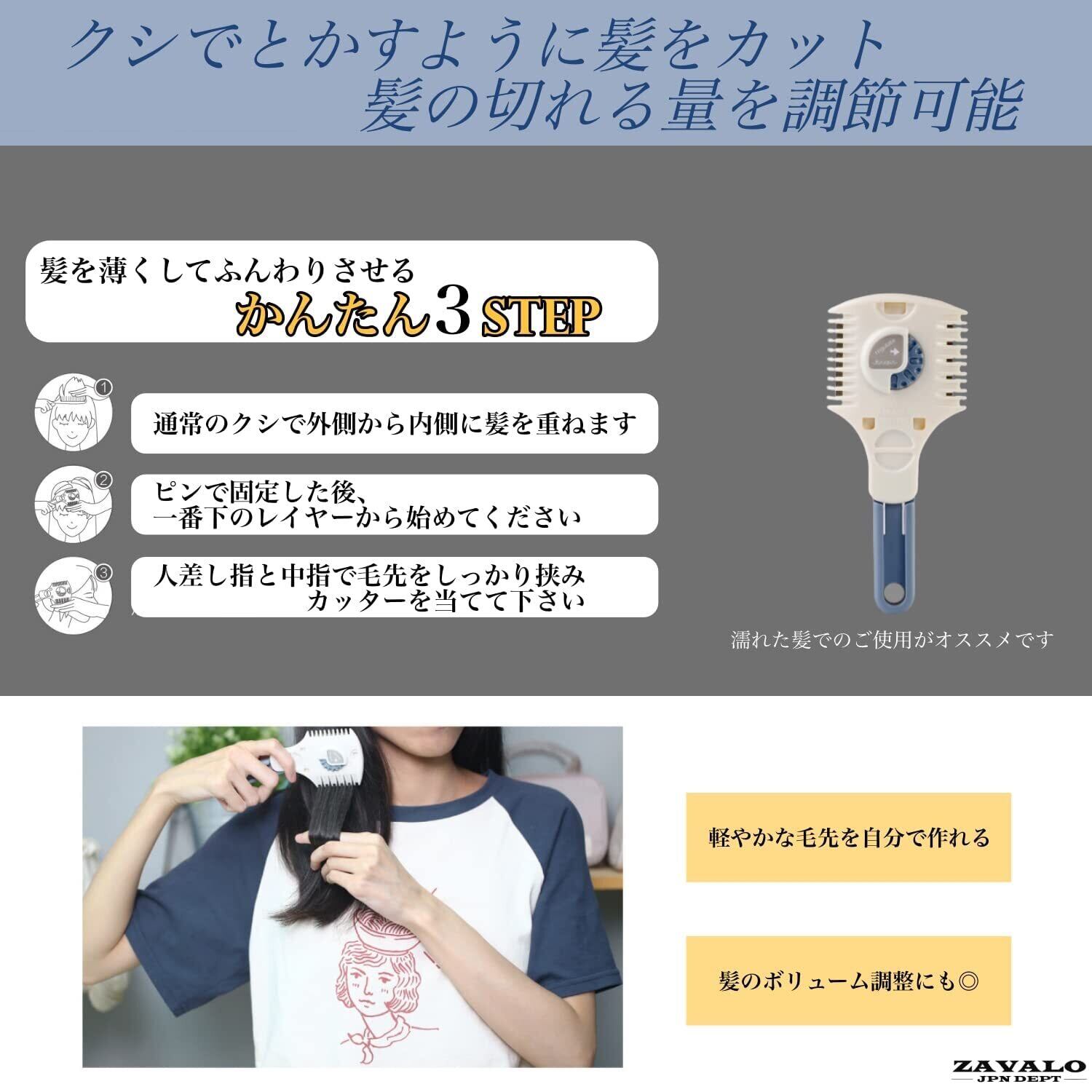 ヘアカッター 枝毛カッター すきかみそり 髪の毛 ヘアトリマー クシ型 すきばさみ セルフカット 前髪 ハサミ ZAVALO