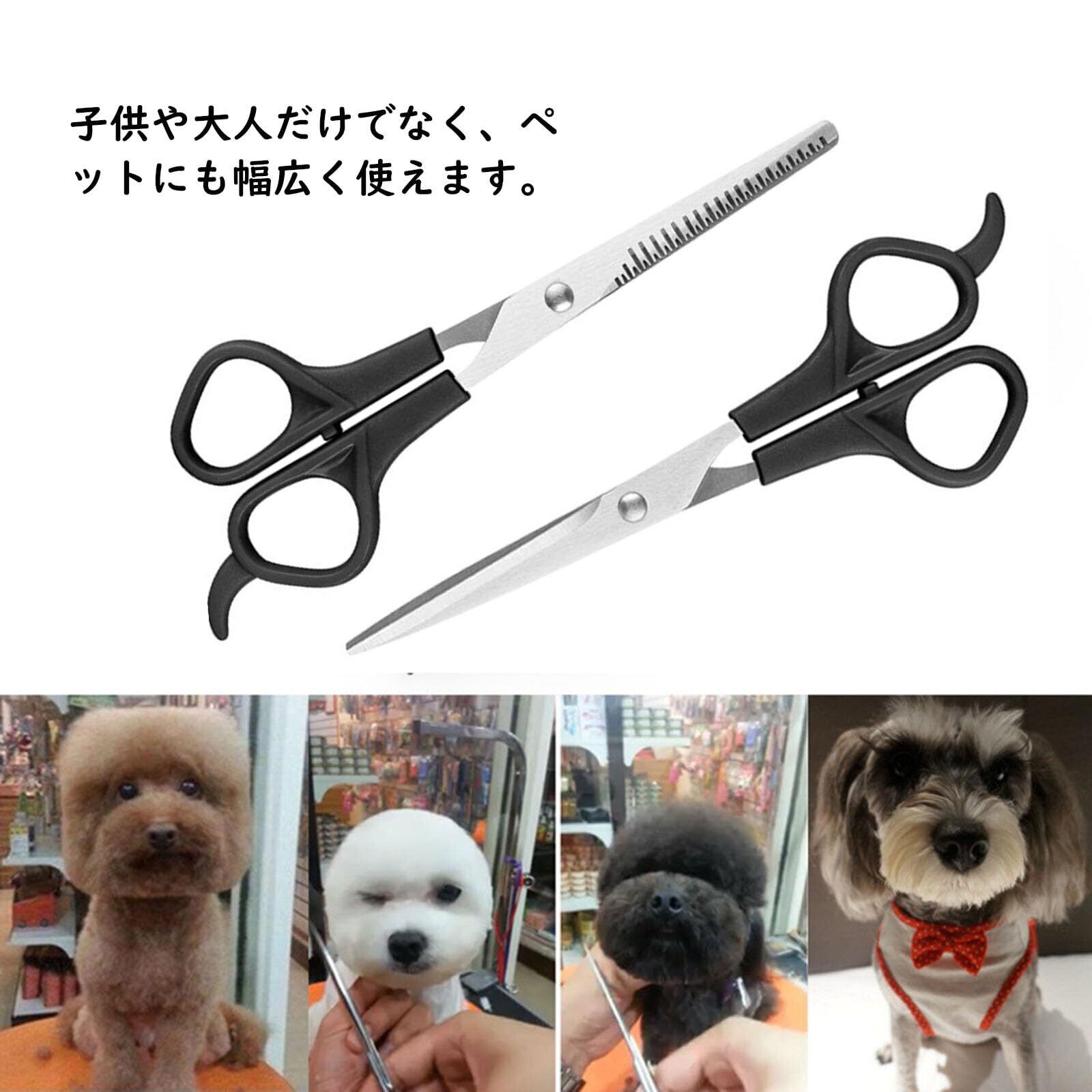 Tanosimi 散髪 ヘアカット 散髪 はさみ スキバサミ 初心者 子供 家庭 ペット 散髪 はさみ セット 3本セット (ブラック)