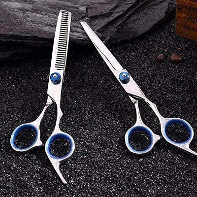 【散髪 ヘアカットハイクオリティ】上質なステンレス製のカットはさみとすきバサミ。プロ用シザーで良く使われている、硬度の高いステンレスを使っていますので、毎日のお仕事にも十分にお使いいただけます。