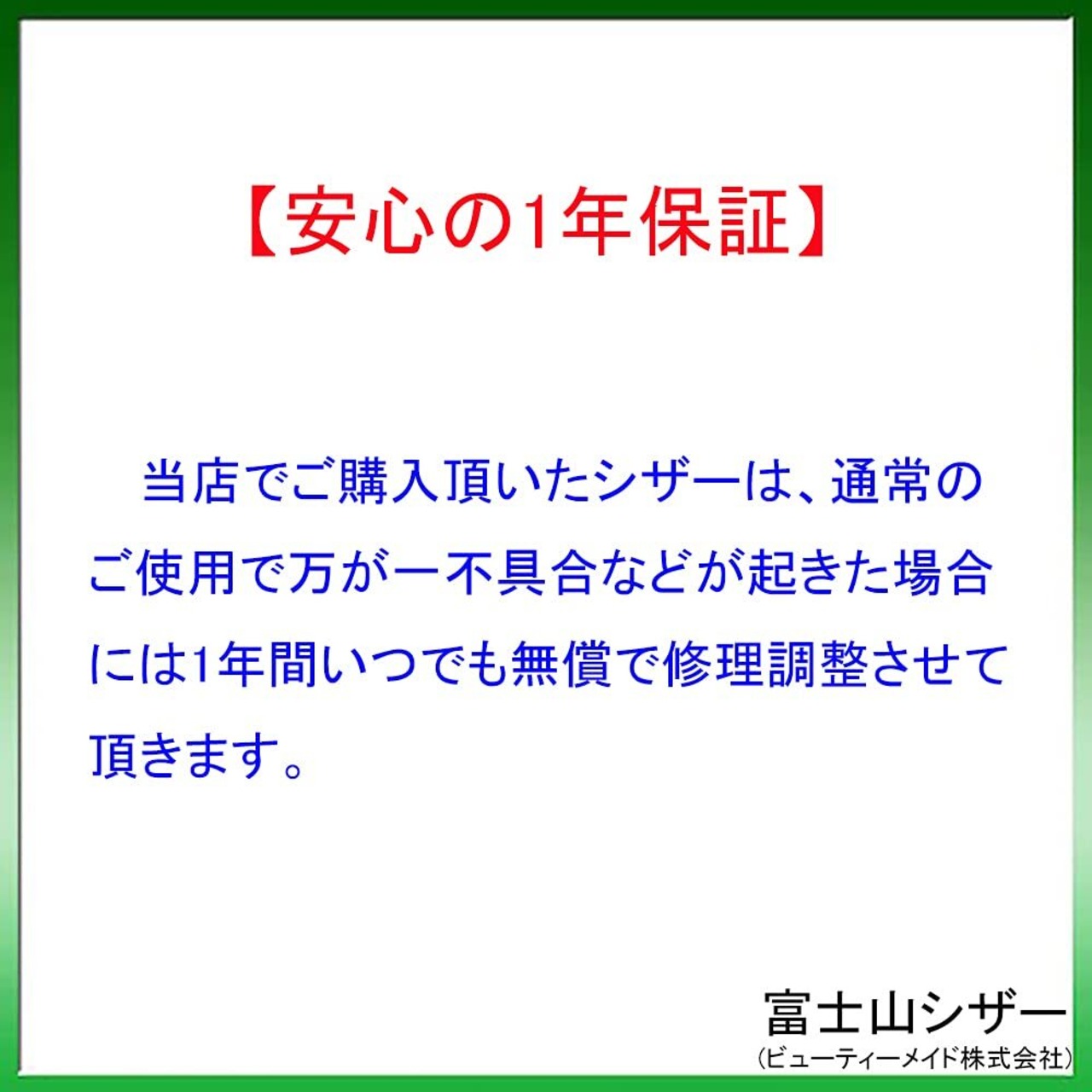 【1年付】当シザーは通常のご使用で万が一不具合などが起きた場合には1年間いつでも無償で修理、調整致します。
