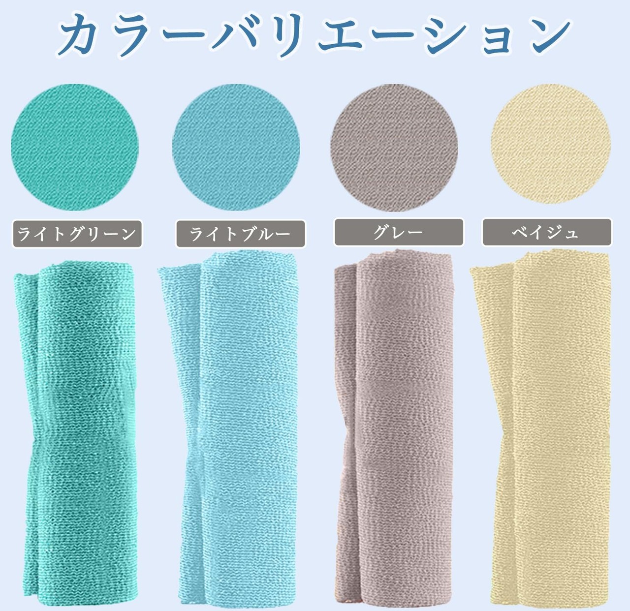かなり硬めの設定で、適度な刺激で肌の血行を促進。植物由来のビスコース素材。
