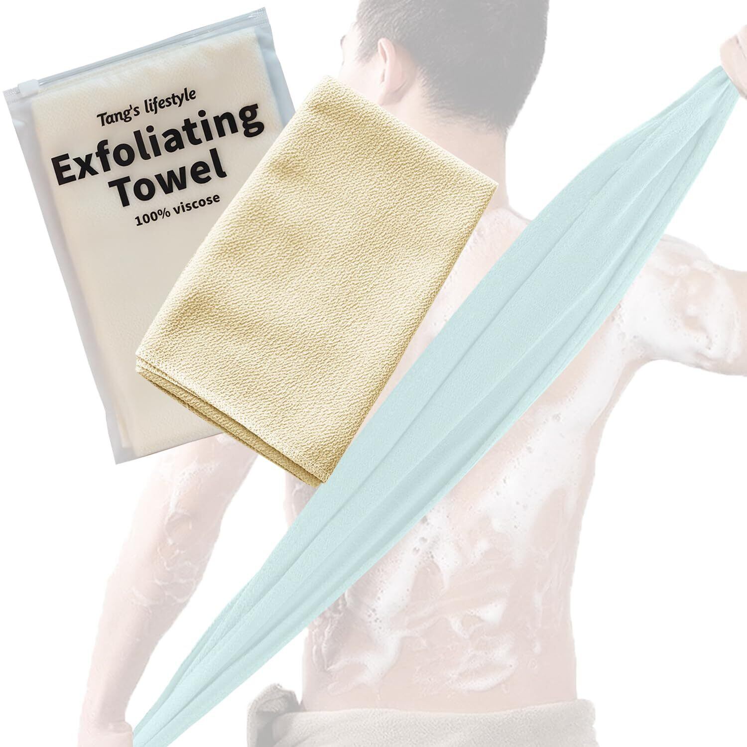 垢すりタオル スーパーハード(かなり硬め) 背中もしっかりケア出来る適度な長さ 植物由来のビスコース生地 便利な収納袋付き アカスリあかすり 垢擦り ボディータオル (ベージュ)