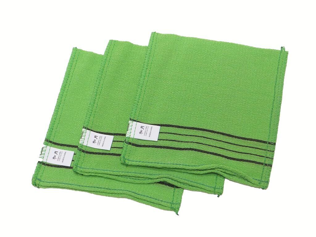 松月(ソンウォル) SONGWOLTOWEL 創業70余年 本場韓国 タオル トップメーカー 垢すり 垢擦り アカスリ プロ御用達 本格派 セルフエステ 韓国製「SONG WOLの韓国式あかすりタオル」 (袋式(12×15.5cm)3枚組, グリーン)