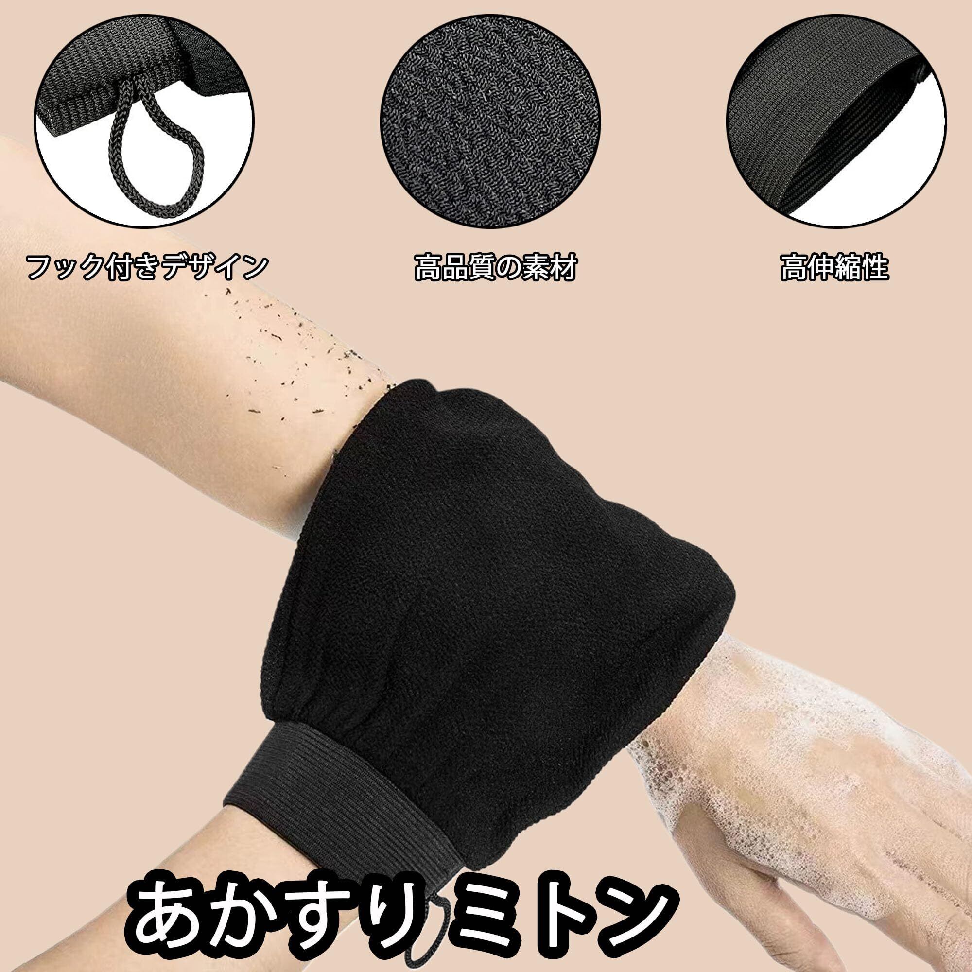 DEVENTORZ ボディータオル あかすり ミトン 2点セット 体洗うタオル 垢擦りミトン 無痛 肌に傷つけない 背中もしっかりケア出来る適度な長さ 強力泥すり 角質ケア 黒ずみ 背中 おしり 男女兼用 (ブラック)