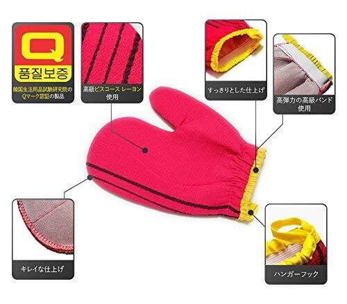 親指手袋あかすり:210mm x 170mm、両面つばあかすりタオル:850mm x 110mm