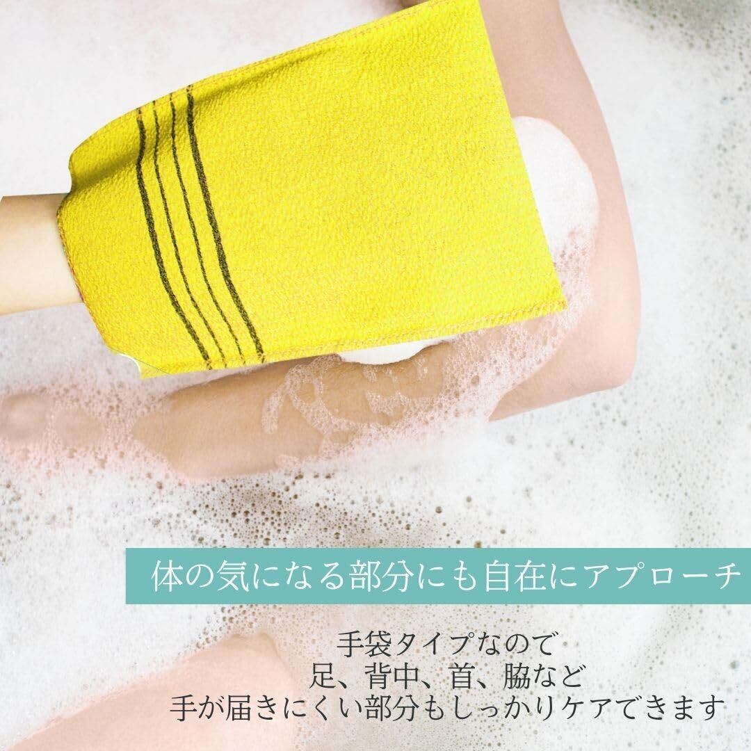 【コンパクトケア、あなたの美肌を守る】この革新的な手袋型あかすりタオルは、ショートタイプで手の届きにくい部位も楽にケア可能。手に装着することで、細やかな力加減が可能になり、脇や膝、太ももの裏などの見えにくい部分も優しく、しかし徹底的に洗浄します。薄型かつコンパクトで、持ち運びに便利なため、出張や旅行中も手軽に美肌ケアが行えます。どこでも簡単に使用できるため、忙しい毎日でも肌の美しさを維持できる最良のパートナーです。