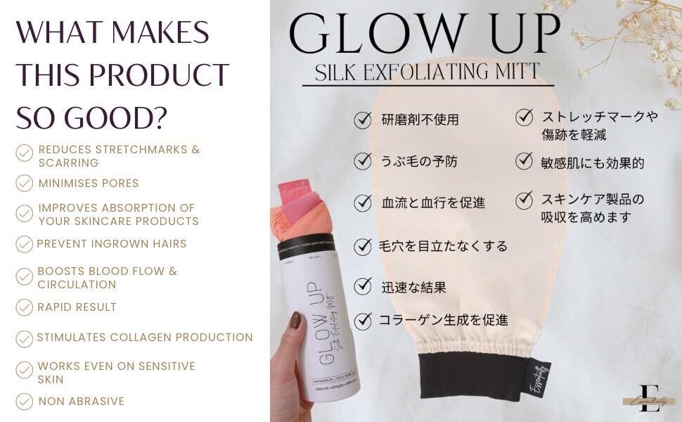 【100%シルク素材】敏感肌の方にもお使い頂ける優しいシルク素材を採用しており、髪の毛1本より細い繊維でしっかり編み込まれた生地で健康で美しい肌をつくります。 【使いやすいグロープ式】手を入れるグローブタイプなので、力を入れすぎなくても使いやすくなっています。水を吸わせることで触り心地や強さを変えることができ、体もピッカピカ、ポロポロ取れてクセになります。