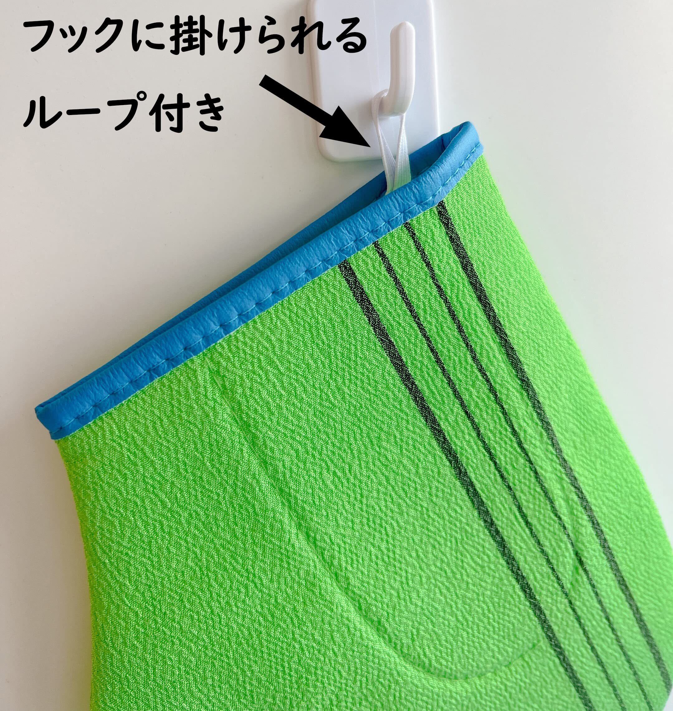 親指が分離してるから 手の腹で 腕 足 脚 首 もしっかりこすれる。 背中は タオルタイプ や ブラシハンドルタイプをオススメ。