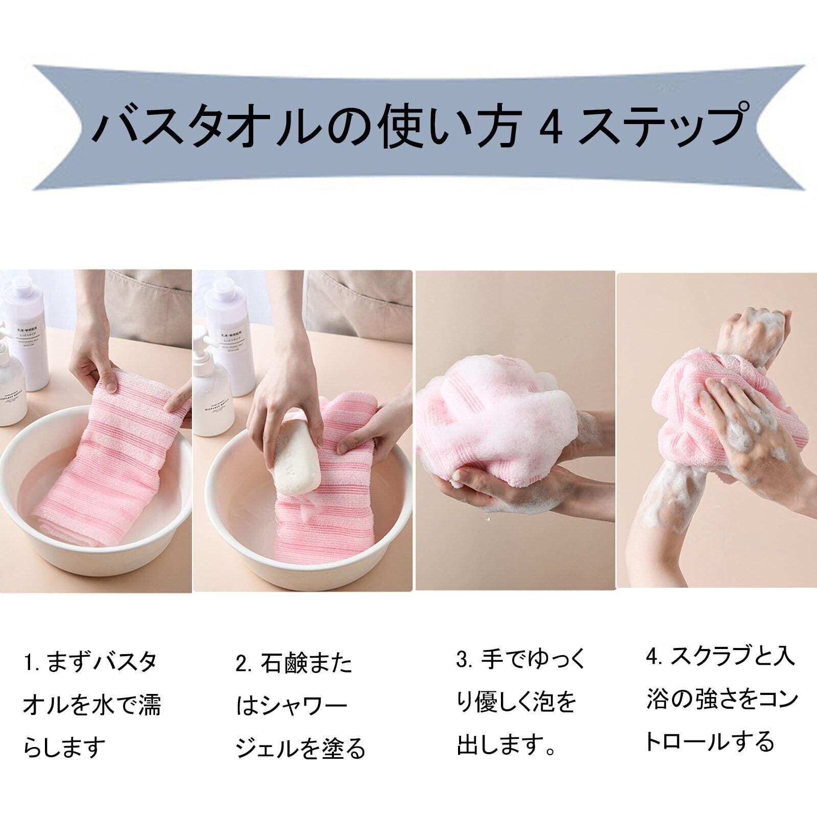 WOVTE あかすりタオル 垢擦り 角質取り 垢擦り 搓澡巾 ボディタオル 繰り返し使用可能 体洗うタオル 角質ケア 腕 背中 足 脚 あかすり お風呂 入浴用品 男女兼用 (ピンク)