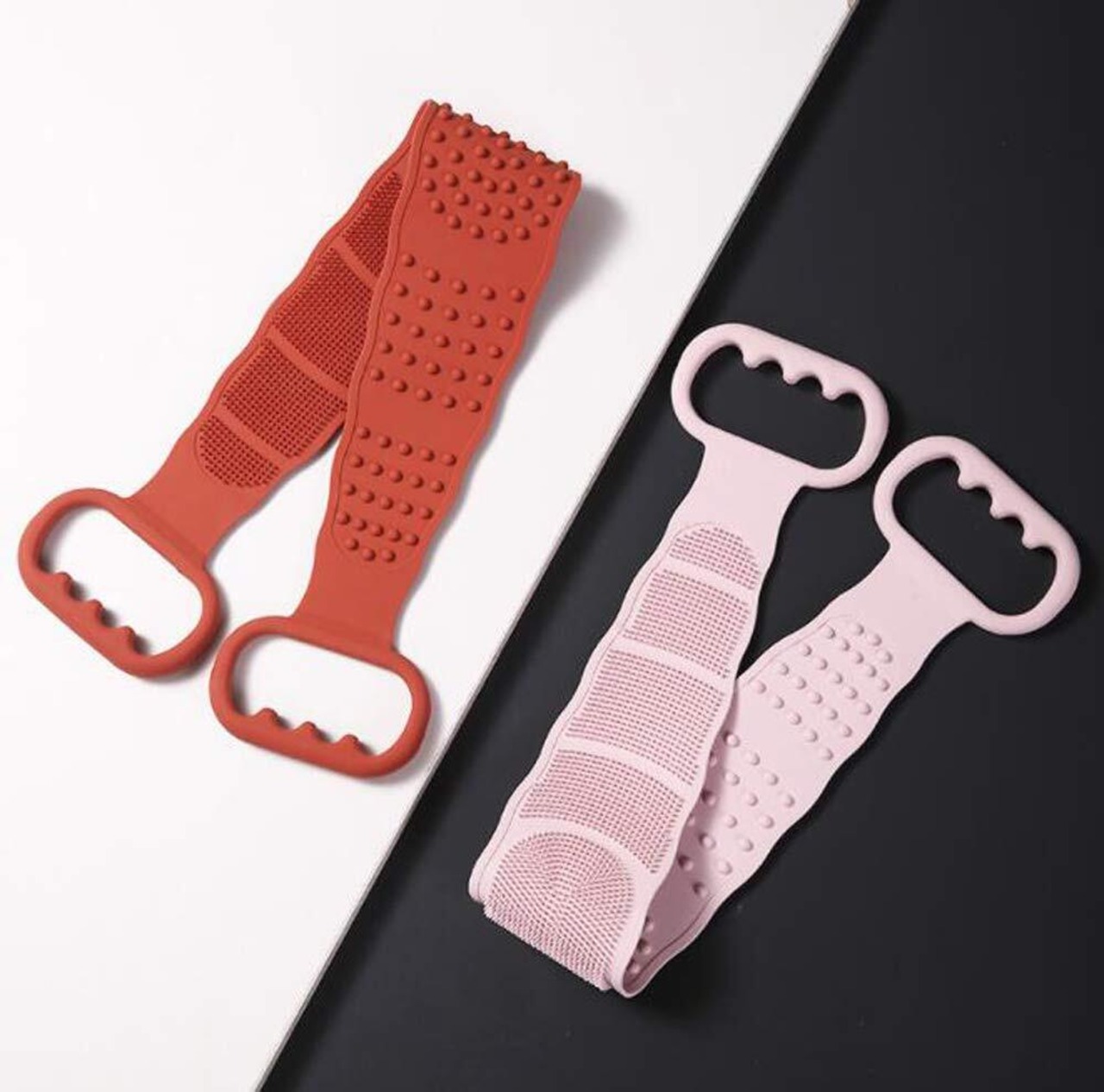 HJ 垢すり タオル あかすり 背中 シリコン 柔らかい 両面用 ニキビ 角質除去 泡立ち 背中洗い マッサージ ボディケア お風呂 バス用品 (2本セット, ピンク)