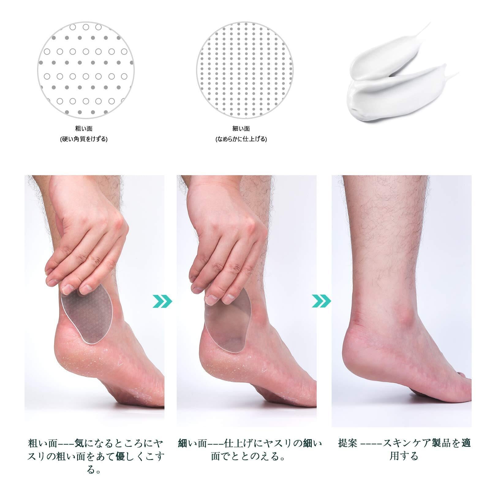 【革新デザイン】両面使いOK、粗い面--硬い角質をけずる、細い面---なめらかに仕上げる、気になるところにヤスリの粗い面をあて優しくこする。仕上げにヤスリの細い面でととのえる。人間工学に基づいたデザイン 同じように見えるガラス製のかかとやすり、健康な皮膚は削らず、男性も握りやすい形・大きさです