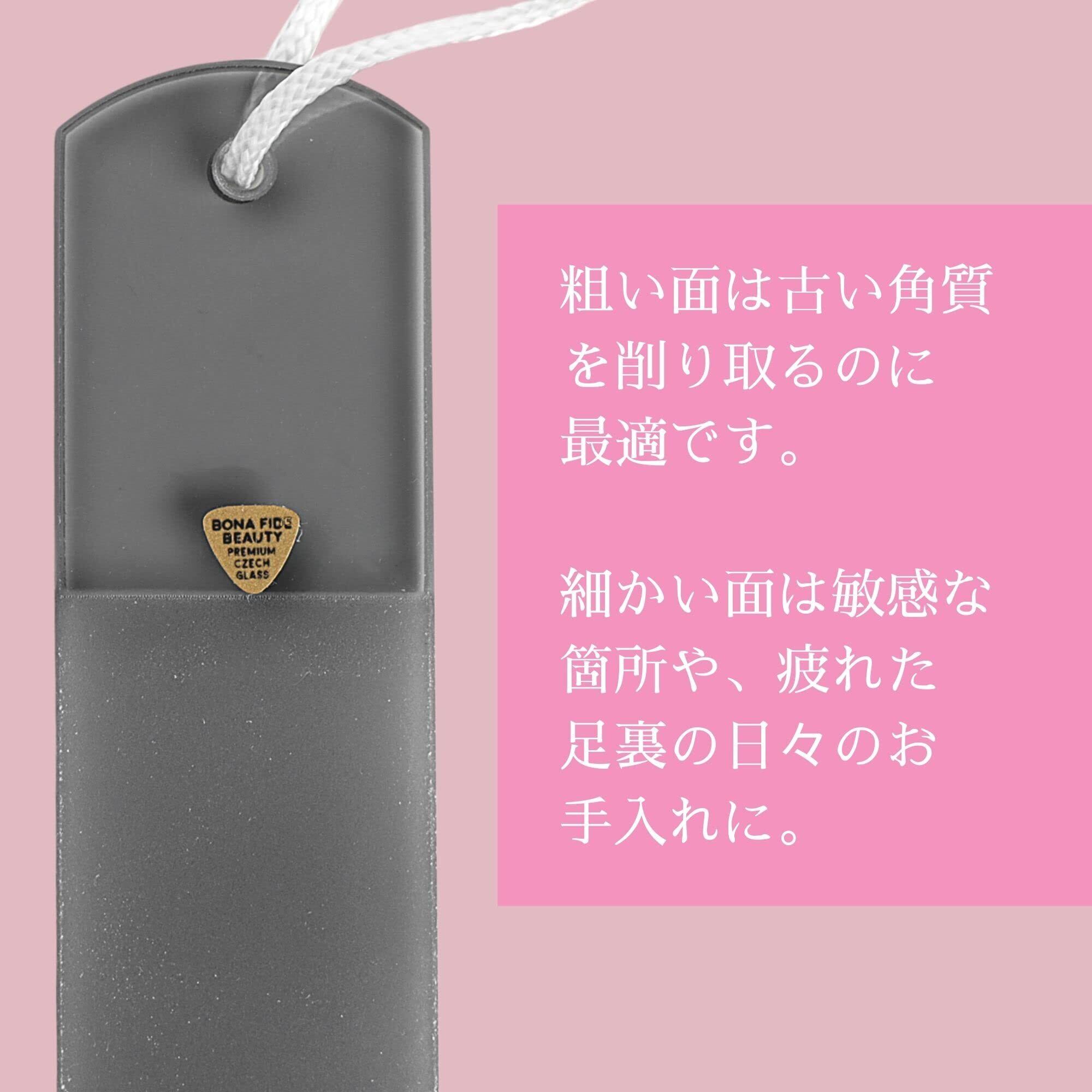 【2022最新】BONA FIDE BEAUTY 【チェコガラス製】かかと角質取り フットファイル 粗/細両面仕様 色グレー 踵ツルツル ボヘミアンガラス使用で水洗い可・ストラップ付 | Lumisfera