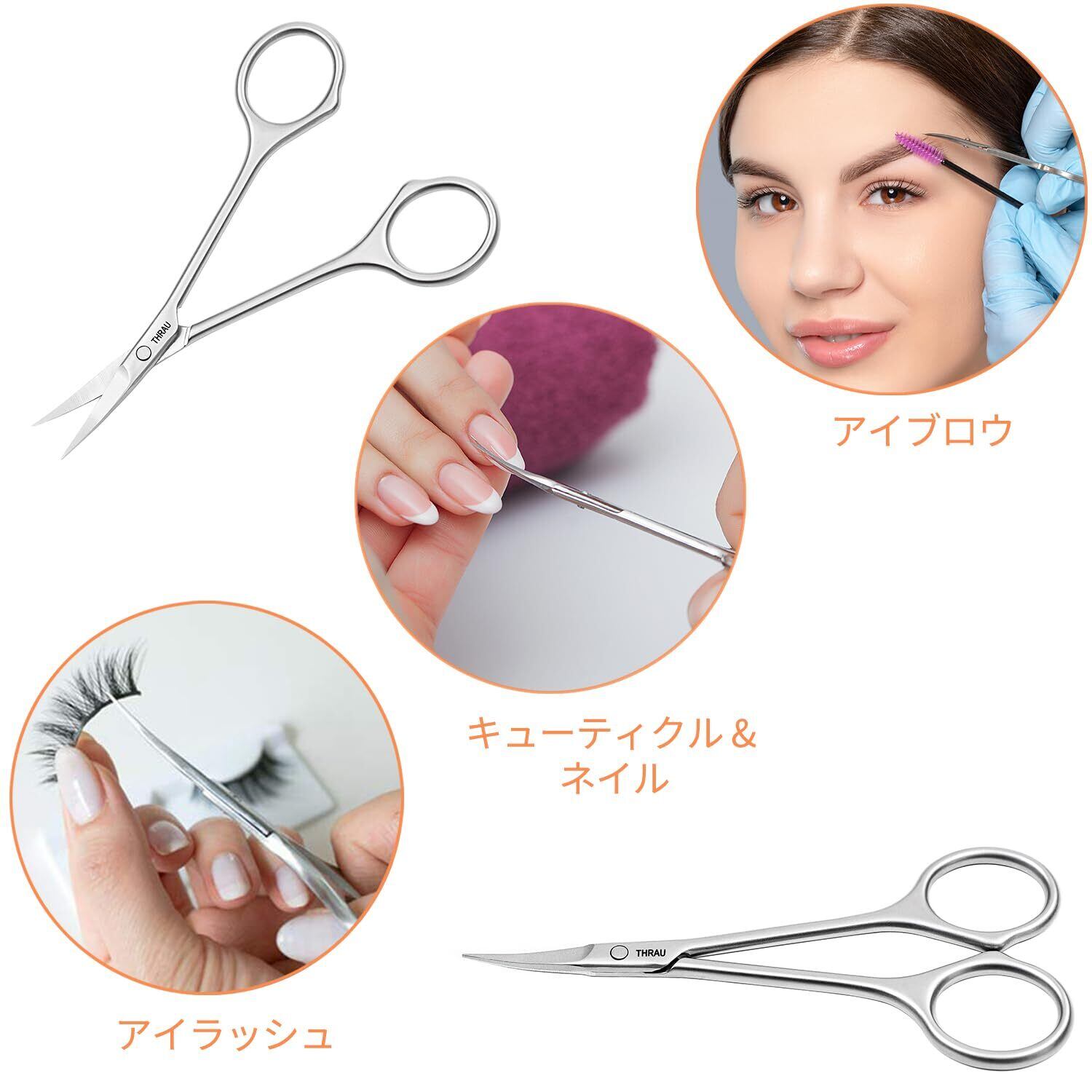 THRAU 眉毛用ハサミ 多機能顔毛用ハサミ 高級ステンレス製ネイルアート・美容ハサミ - 爪、眉毛、鼻毛、髭、まつ毛を簡単にトリミング - カーブした刃 105 mm