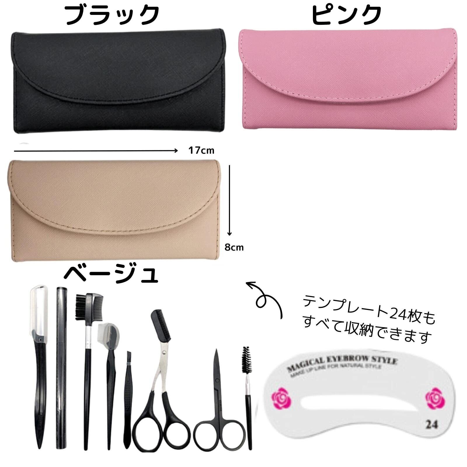 【セット内容】①眉毛テンプレート ②眉毛ハサミ ③スクリューブラシ ④コーム付きハサミ ⑤毛抜き ⑥コーム付きカミソリ ⑦コーム付きブラシ ⑧カミソリ ⑨ブロウライナー