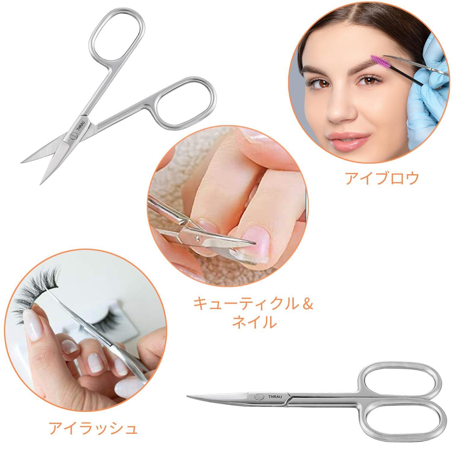 THRAU 高級プロフェッショナル美容ハサミ - ステンレス製多機能小型美容ケアハサミ、角質、爪、眉毛、髭、まつ毛のトリミングに最適 - カーブブレード 96 mm