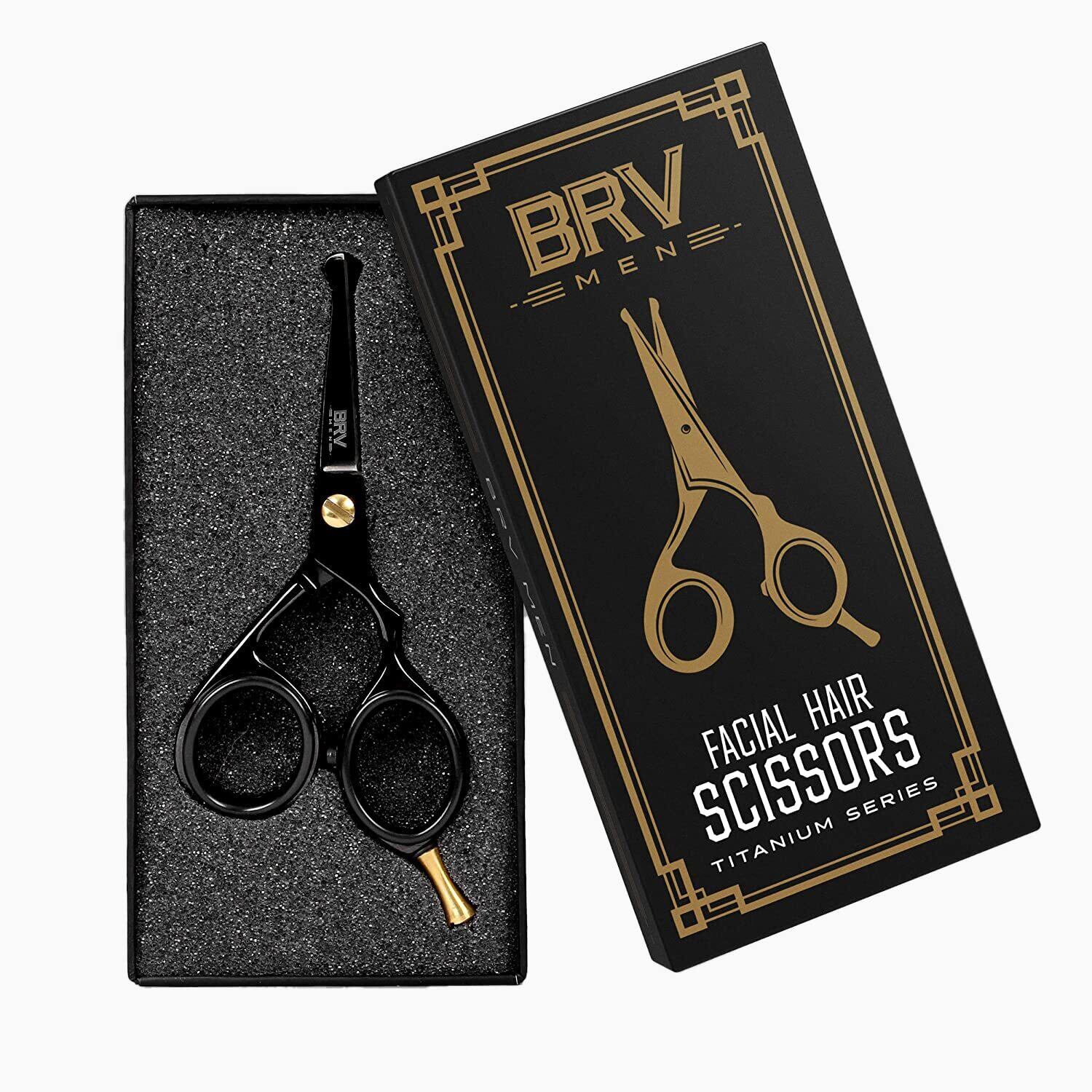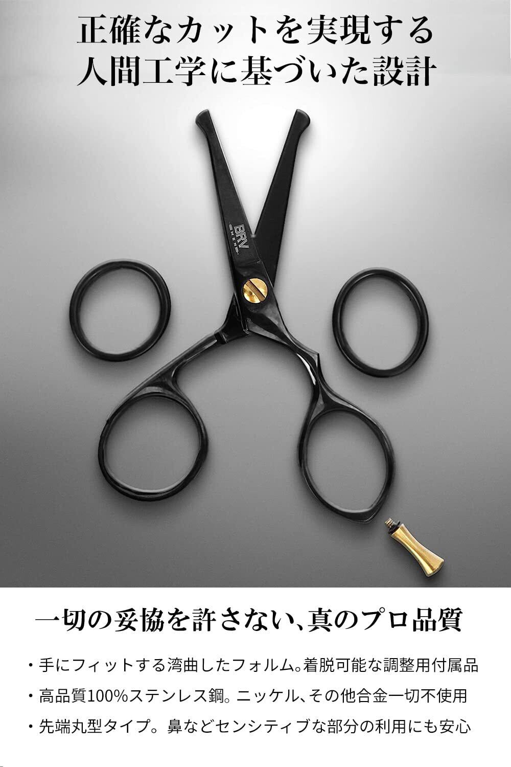 BRV MEN 顔用 オールラウンド はさみ おしゃれでコンパクト 【全米ロングセラー】プロ 職人によるハンドメイド 100%ステンレス鋼 ハサミ - 髭 ひげ 眉毛 鼻毛 ムダ毛 ヘアカット 美容師 家庭 自宅 兼用/メンズ 男性 ギフト にも 日本正規品 (先丸, ブラック)