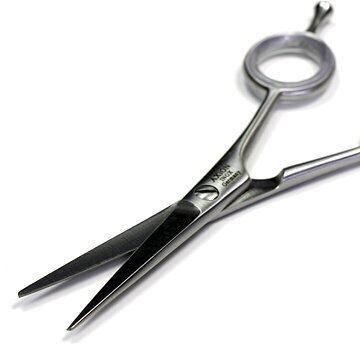 ドイツの刃物メーカーの集合地ゾーリンゲンで製造されたステンレス製の散髪用ハサミです。一度使用すればその切れ味の素晴らしさにびっくりするでしょう。本体表面は高級感漂ういぶし銀のスモーク仕上げです。フィンガーリングとフィンガーレスト及び衝撃受けは取り外しができます。大事に使用すれば一生ものです。