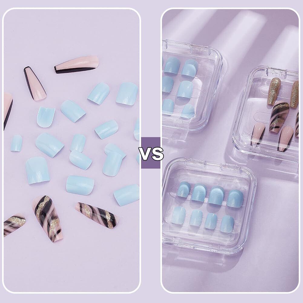 BENECREAT つけ爪収納ボックス 20個 2サイズ 両面テープ2シート入り 透明 人工爪 クリアディスプレイ収納ケース パッキングボックス ネイルサロンに