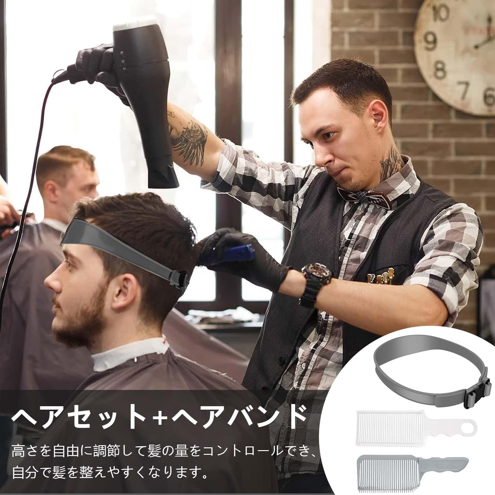 【高品質な素材】この高品質の材料で作られた散髪セットは、ヘアカットバンドが柔らかく、強く、滑らかで、伸縮性があり、洗浄が簡単で、長さを調節できるデザインので、ほとんどの頭囲に対応し、大人でも子供でも使用することができます。ヘアコームの全体的に軽量で、耐熱性、帯電防止で、滑らかな歯と角度の付いた先端で、頭皮を傷つけたり、髪を引っ張ったり、絡まったりするのを防ぎます。
